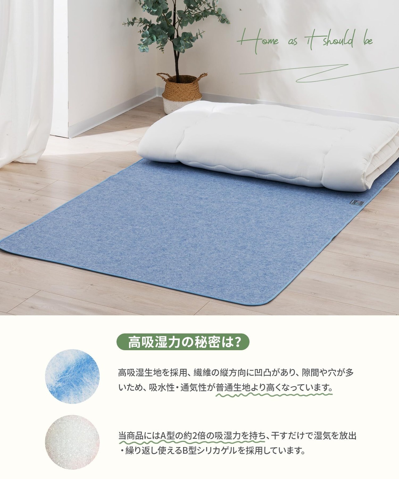 【商品仕様】サイズ:(約)130X180cm 素材:側生地:不織布 充填物:シリカゲルB型 干すタイミングがわかる吸湿センサー付きで、お手入れ簡単、繰り返しお使いいだけます。