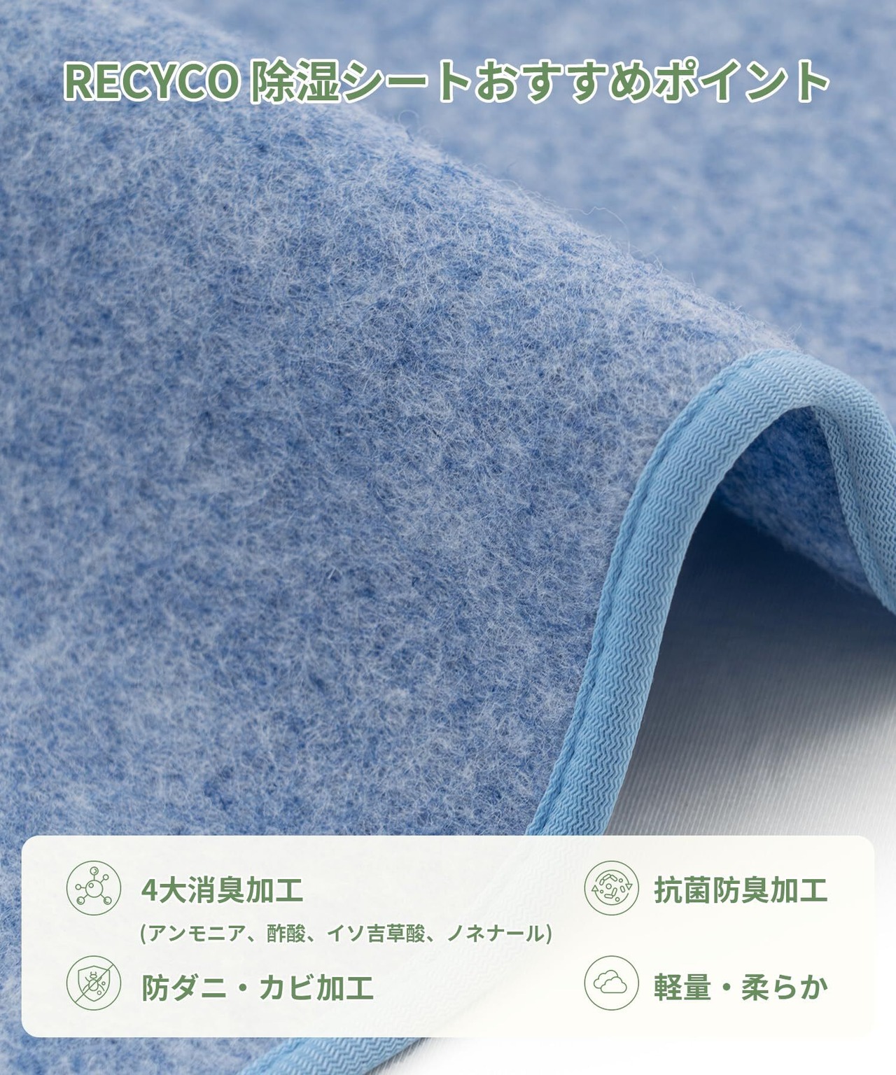 【 限定】RECYCO 除湿シート 寝具用 防湿 高吸湿力 除湿マット 湿気取り シリカゲル入り 調湿センサー付き 防ダニ 防カビ 防臭 消臭 洗える 結露対策 梅雨対策 ダブル 130X180cm ネイビー
