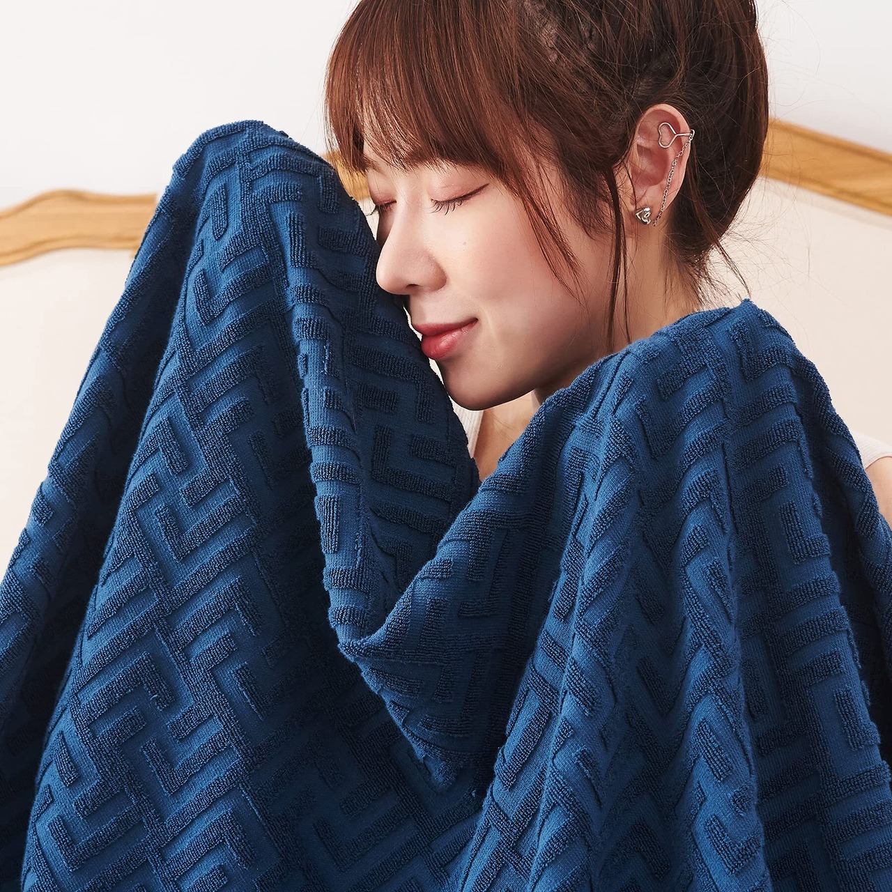 【特価セール】AYO タオルケット シングル ブランケット 綿100% コットン おしゃれ エアーケット キルトケット 抗菌 肌掛け 軽量 柔らかく肌触り 毛玉が出ない 毛布 オールシーズン 夏用 ソファー用 丸洗いOK 吸湿速乾 母の日 父の日 誕生日のプレゼント(ネイビー,140*190cm)