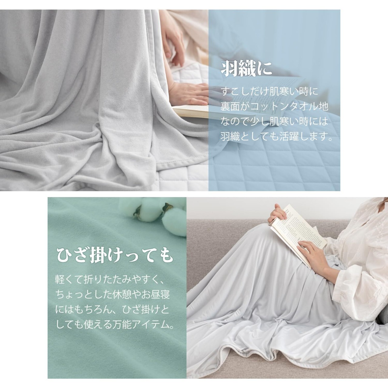 【春~夏~秋まで長いシーズン使える】気温やシーンに合わせて、リバーシブルの冷感面とタオル面を使い分けられます。1枚で2通りの使い方ができるので、理想の眠りを実現!