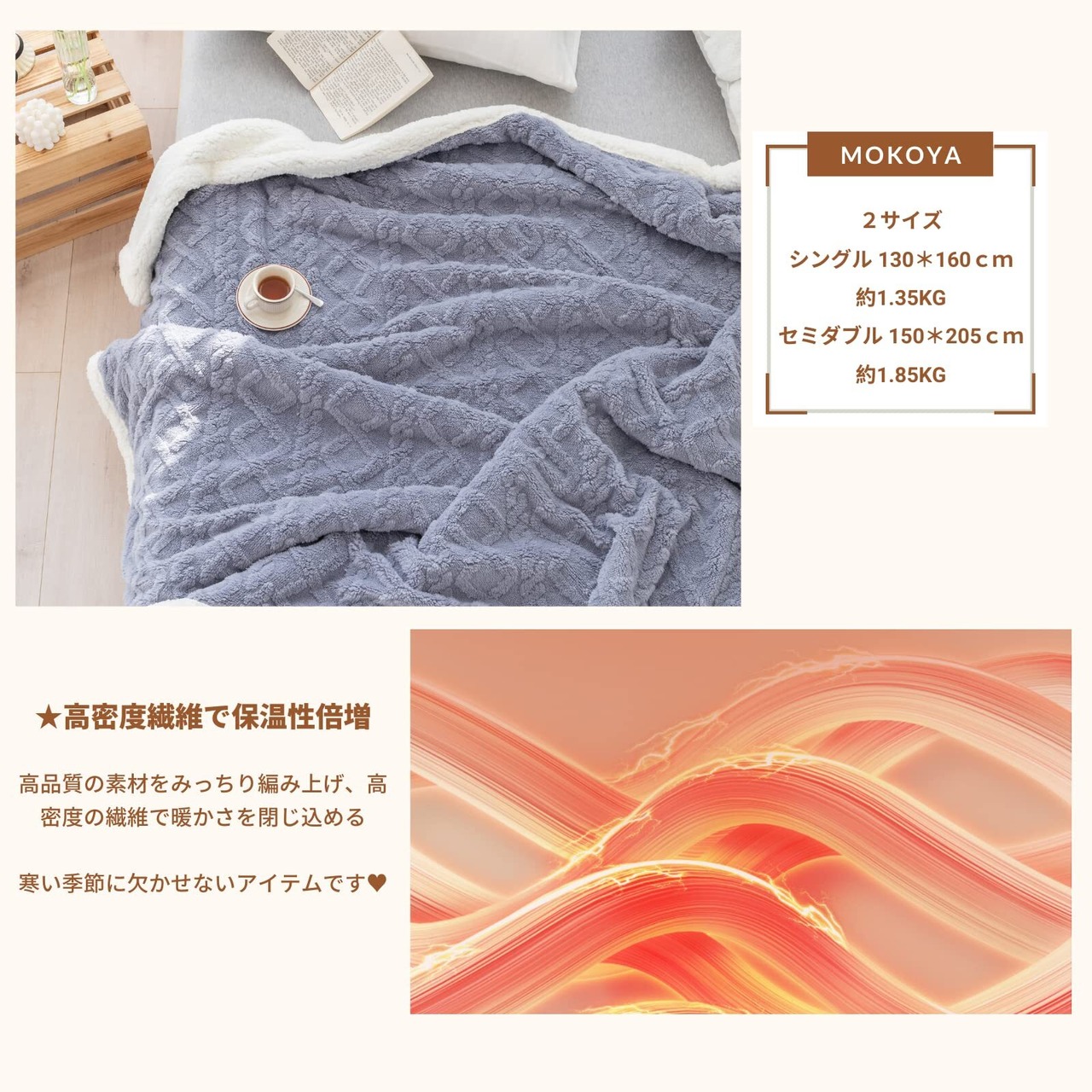 Mokoya 毛布 冬用 セミダブル 厚手150x205cm おしゃれ 二枚合わせ ブランケット 大判 北欧風ボア 軽量掛け毛布 抗菌防臭 防ダニ 静電抑制(グレー)