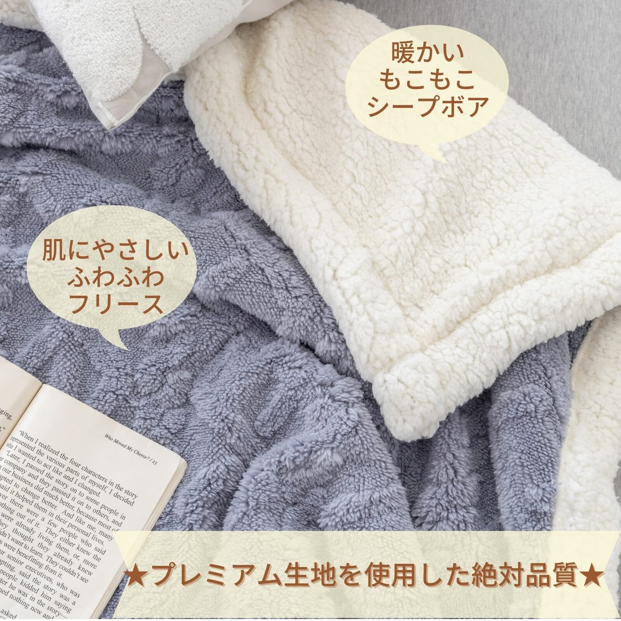 【絶妙な二重構造で保温性抜群】すべ滑らかなフリースともこもこのシープボア生地を重ねて縫い合わせて作った二枚合わせ毛布・ブランケットです。二重構造により、保温性が倍増します!フリースは柔らかくてふんわりとした感触を提供し、羊の毛並みのようなシープボアは体に密着して暖かさをキープします。季節を問わず活躍し、快適な睡眠やリラックスタイムをお楽しみいただけます。
