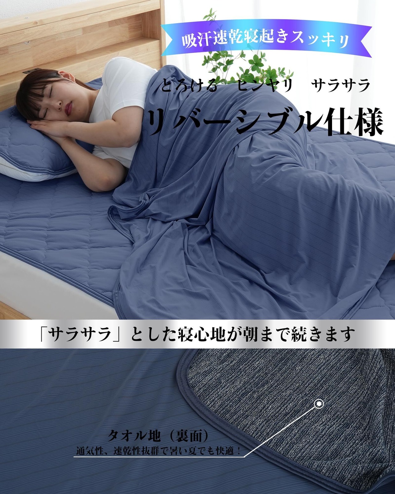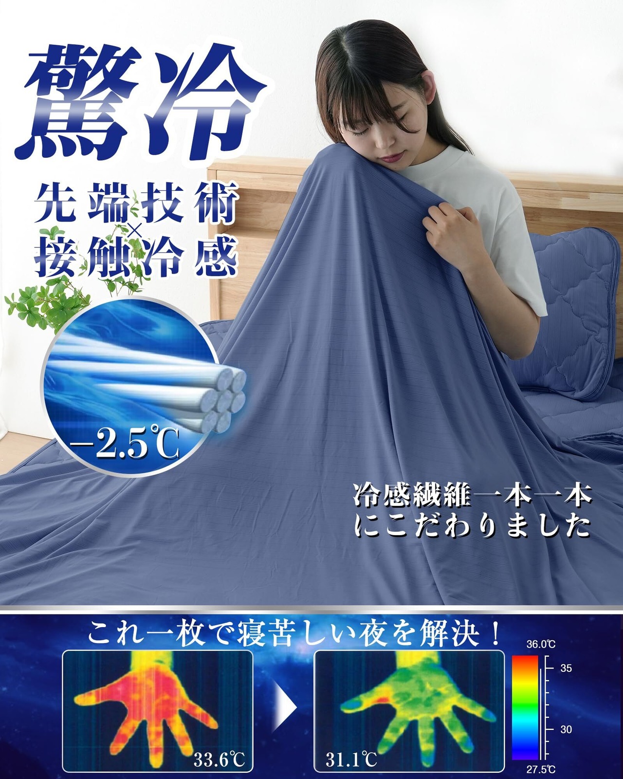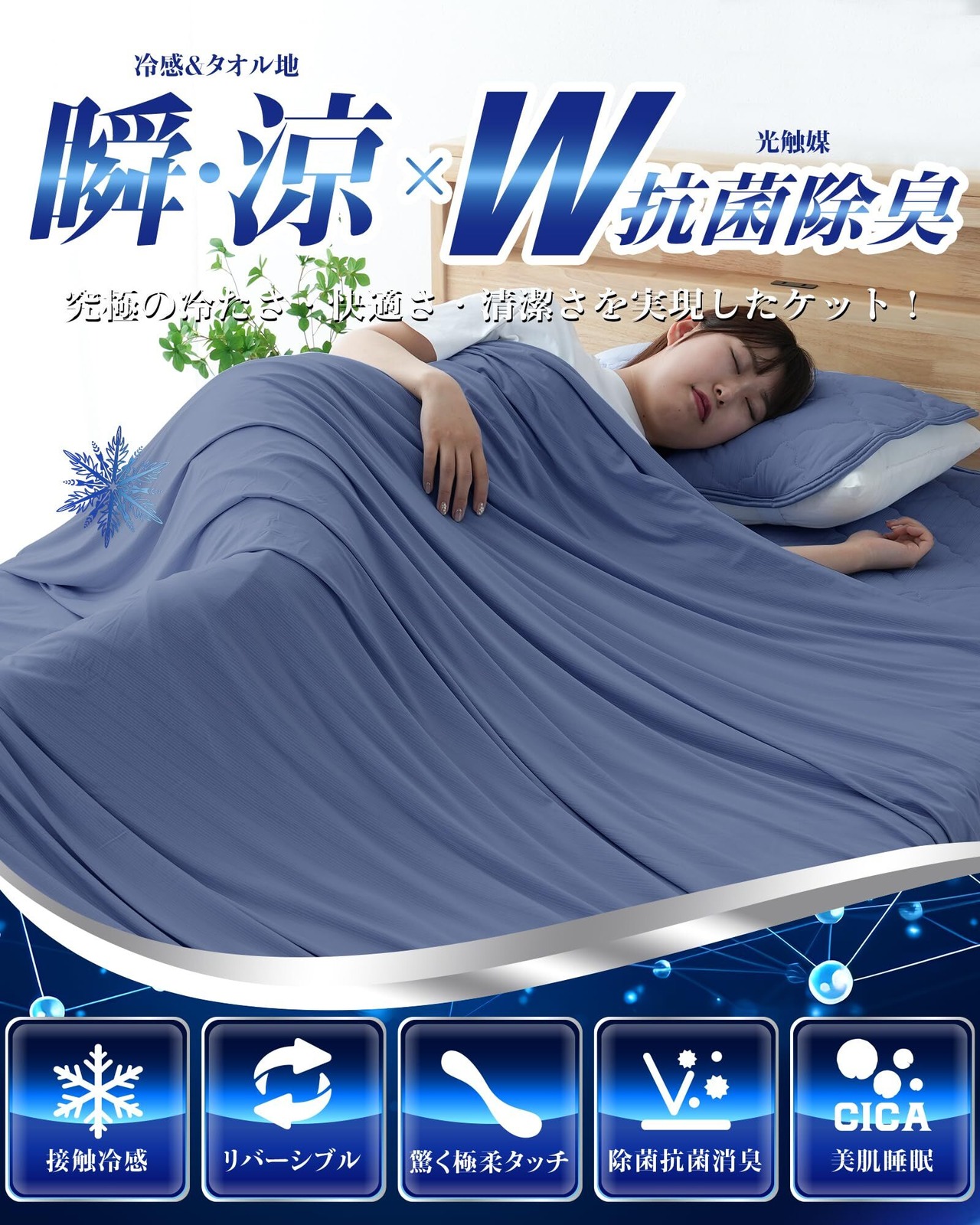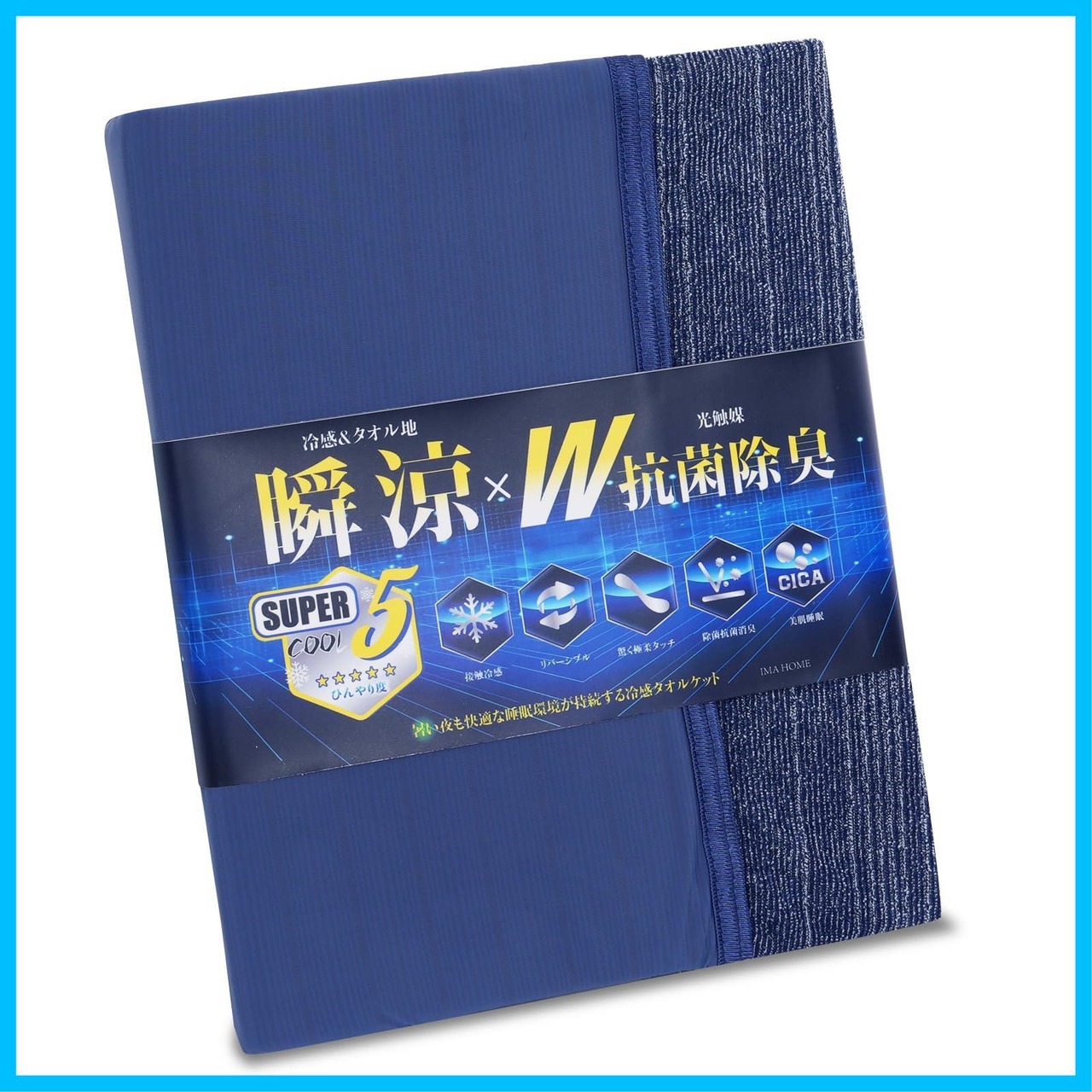 IMA HOME 【究極冷感×天然レーヨン入り】冷感 タオルケット 夏用 シングル ひんやり 業界高Q-max0.531 リバーシブル 冷感タオルケット 両面用 W抗菌除菌 ・防臭防ダニ ひんやりケット 冷感ケット 夏 接触冷感 ブランケット たおるけっと クールケット 吸湿速乾 クール 洗える (140×190cm ネイビー)
