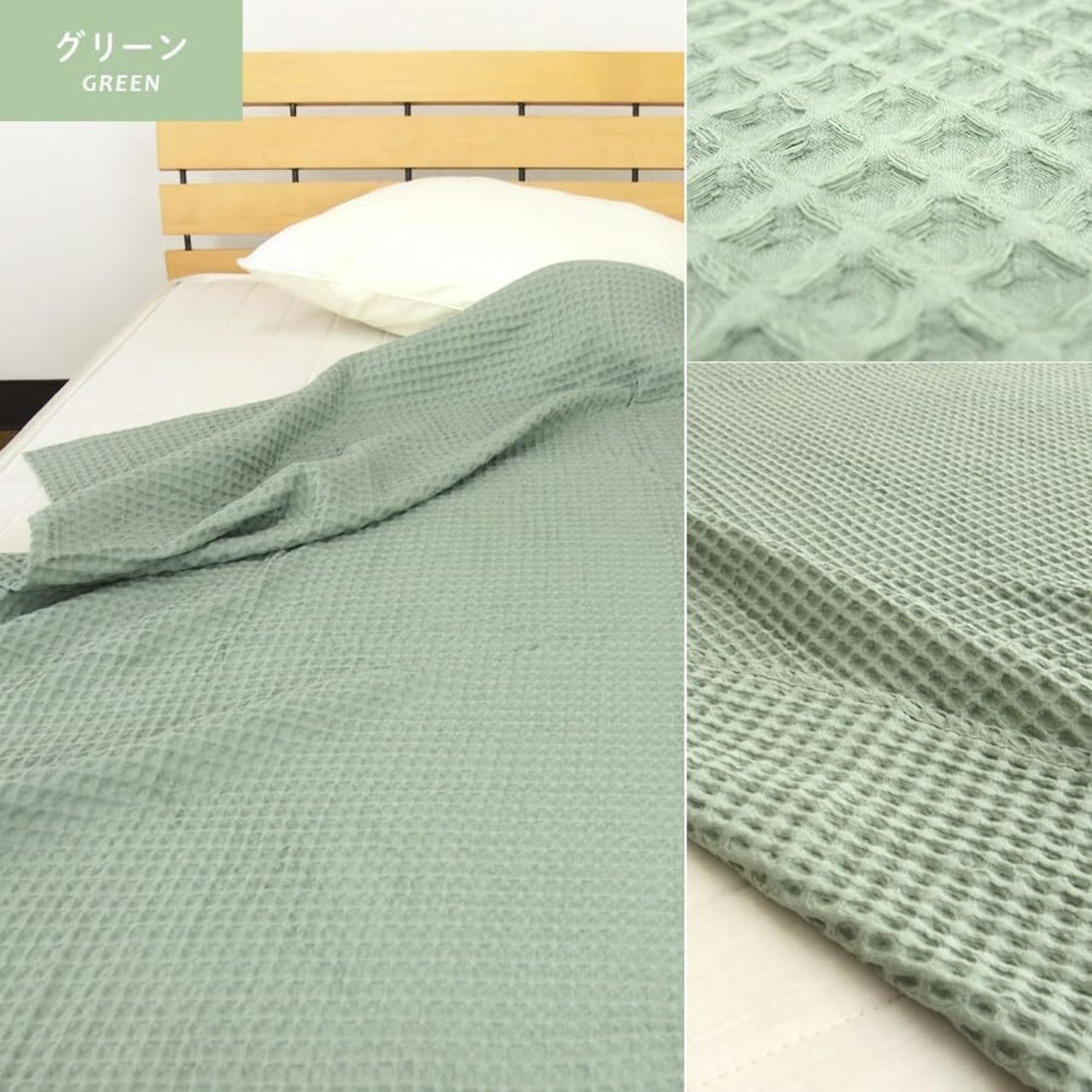 リヴェール タオルケット ワッフルケット ハーフサイズ ハーフケット ブランケット 綿100% コットン おしゃれ 肌掛け 毛布 おしゃれ オールシーズン 夏用 丸洗いOK (グリーン)