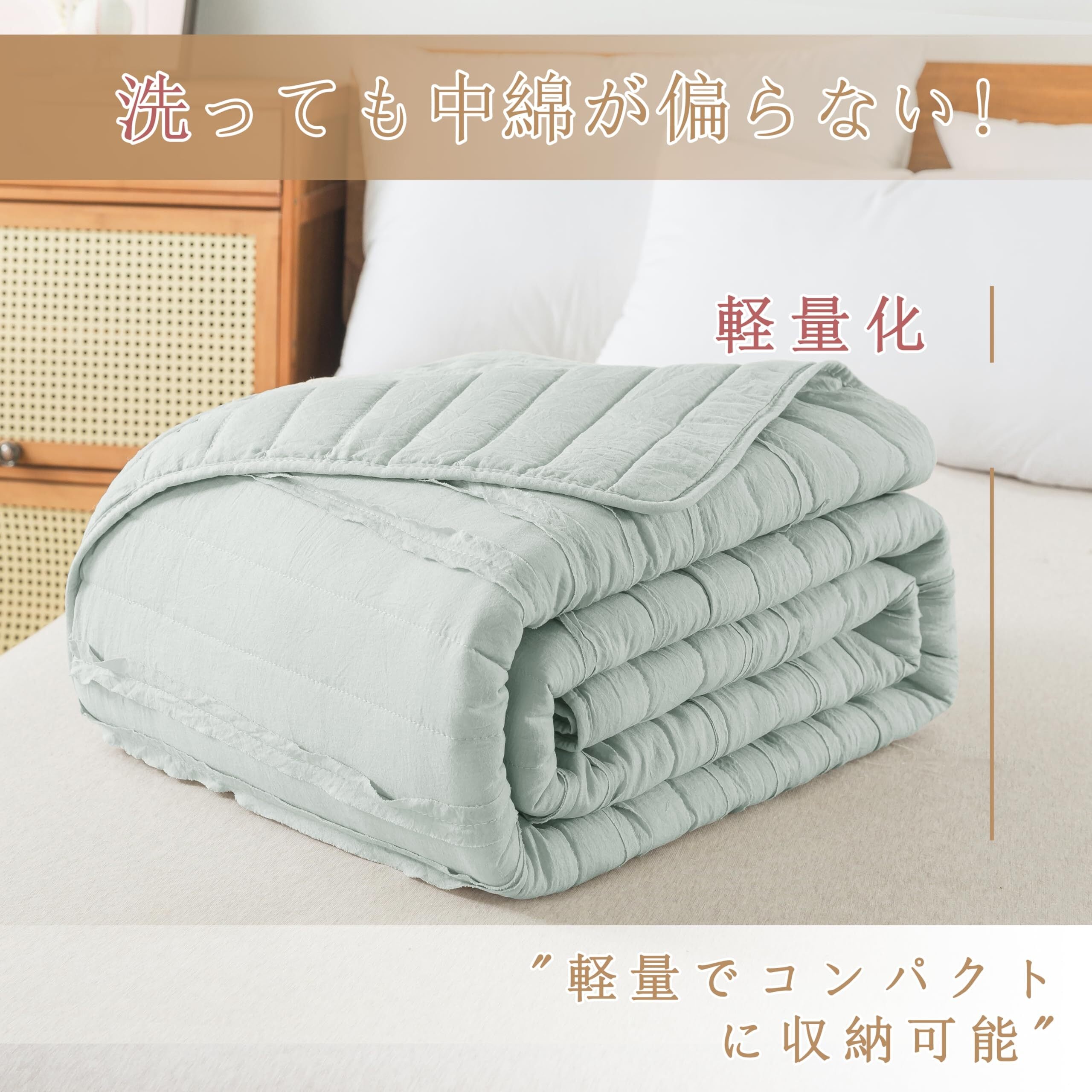 キルトケット セミダブル 合掛け 春秋向き 布団 洗える かけ布団 柔らか 暖い 軽量 収納便利 オールシーズン 合い掛け布団 【超極細中綿使用】吸湿 通気 速乾 (グリーン, シングル・140X200cm)