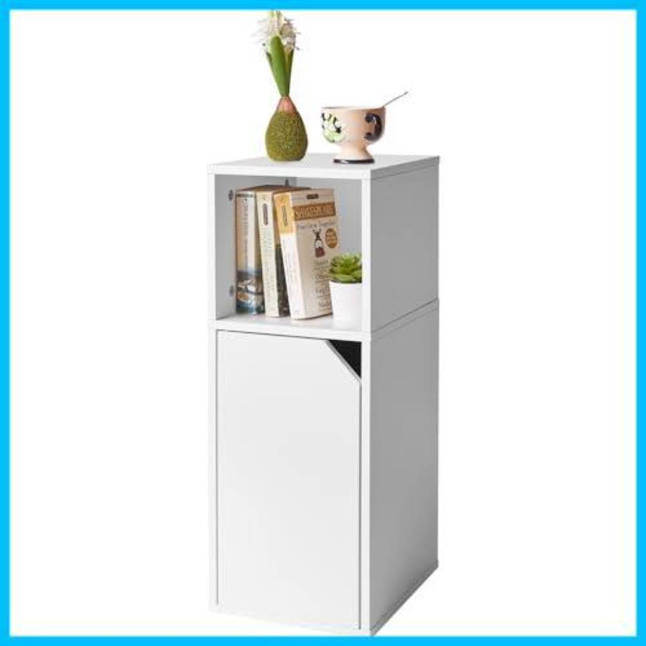 YMYNY ナイトテーブル サイドテーブル スリム 扉付き 木製 MDFボード 組み立て簡単 コンパクト ナイトスタンド ソファテーブル 隙間収納 小物収納 寝室 玄関 棚 卓下 〔左開き〕 ホワイト HST016W