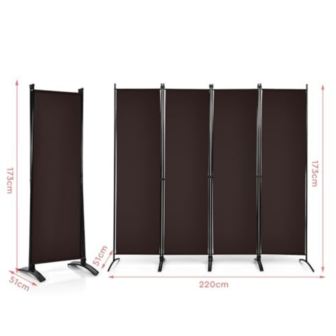 Costway パーテーション 間仕切り 4連 高さ173cm 幅220cm 布タイプ 目隠し スクリーン 屏風 折りたたみ 衝立 おしゃれ 軽量 コンパクト収納 オフィス 事務所 クリニック (4連-ブラウン)