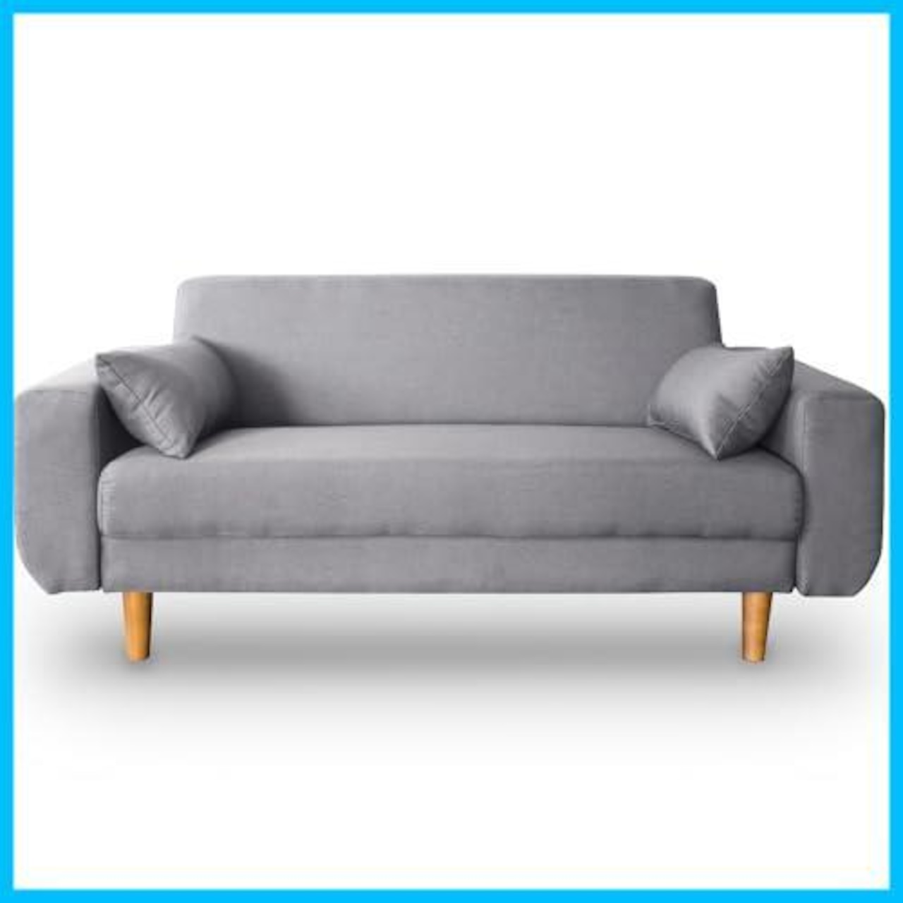 【特価商品】アイリスプラザ ソファ 2人掛け 幅159cm クッション2個付き かんたん組立 天然木脚 高さ14cm ロボット掃除機も通れる アッシュグレー EJ-2003