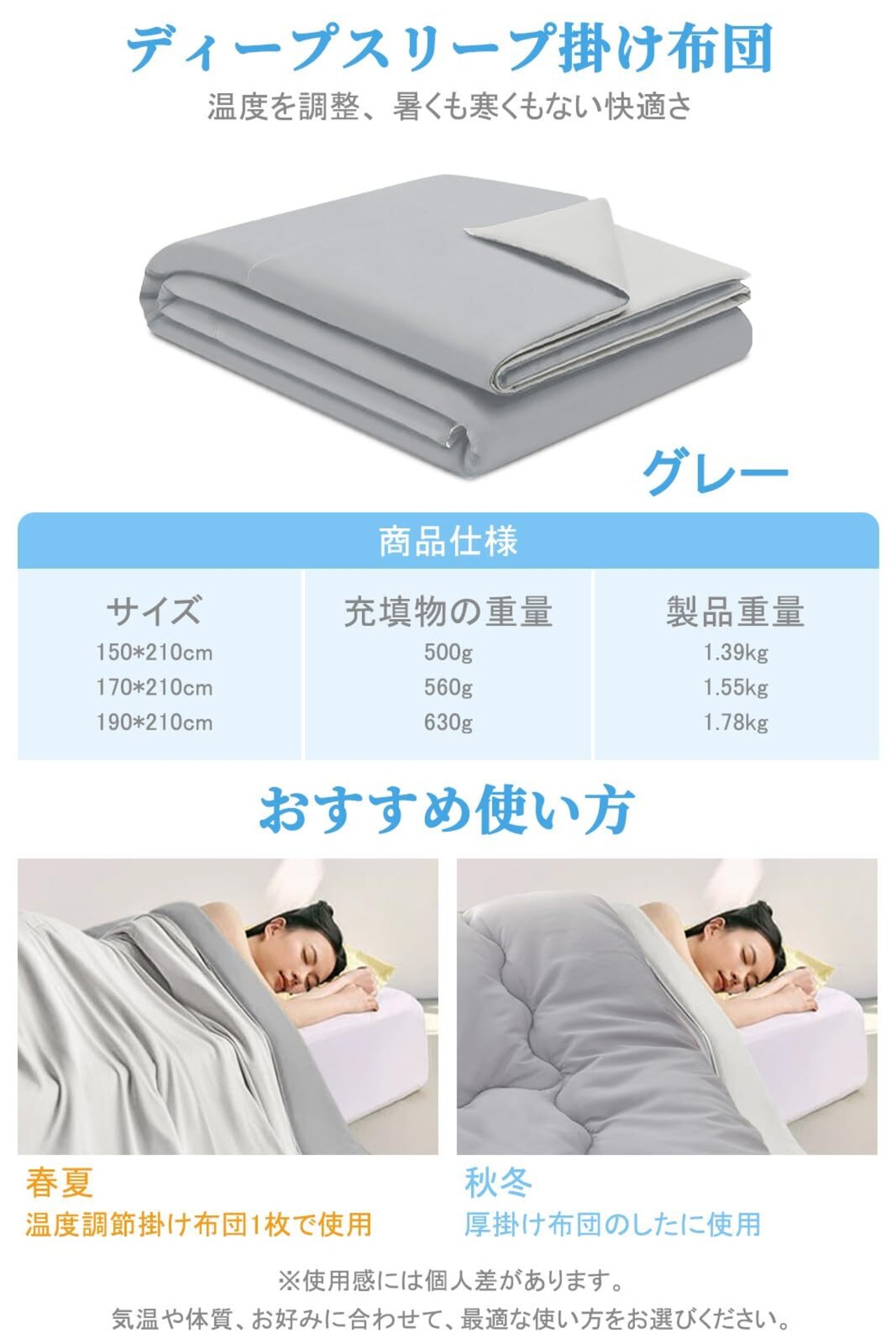 【快適な温度調節機能で一年中快眠】スマートな温度調節機能を備え、季節や体温に応じて心地よい温度をキープ。暑い季節はこれ一枚で快適に、寒い季節は厚手の掛け布団と重ねて使うことで、一年を通して快適な眠りをサポートします。