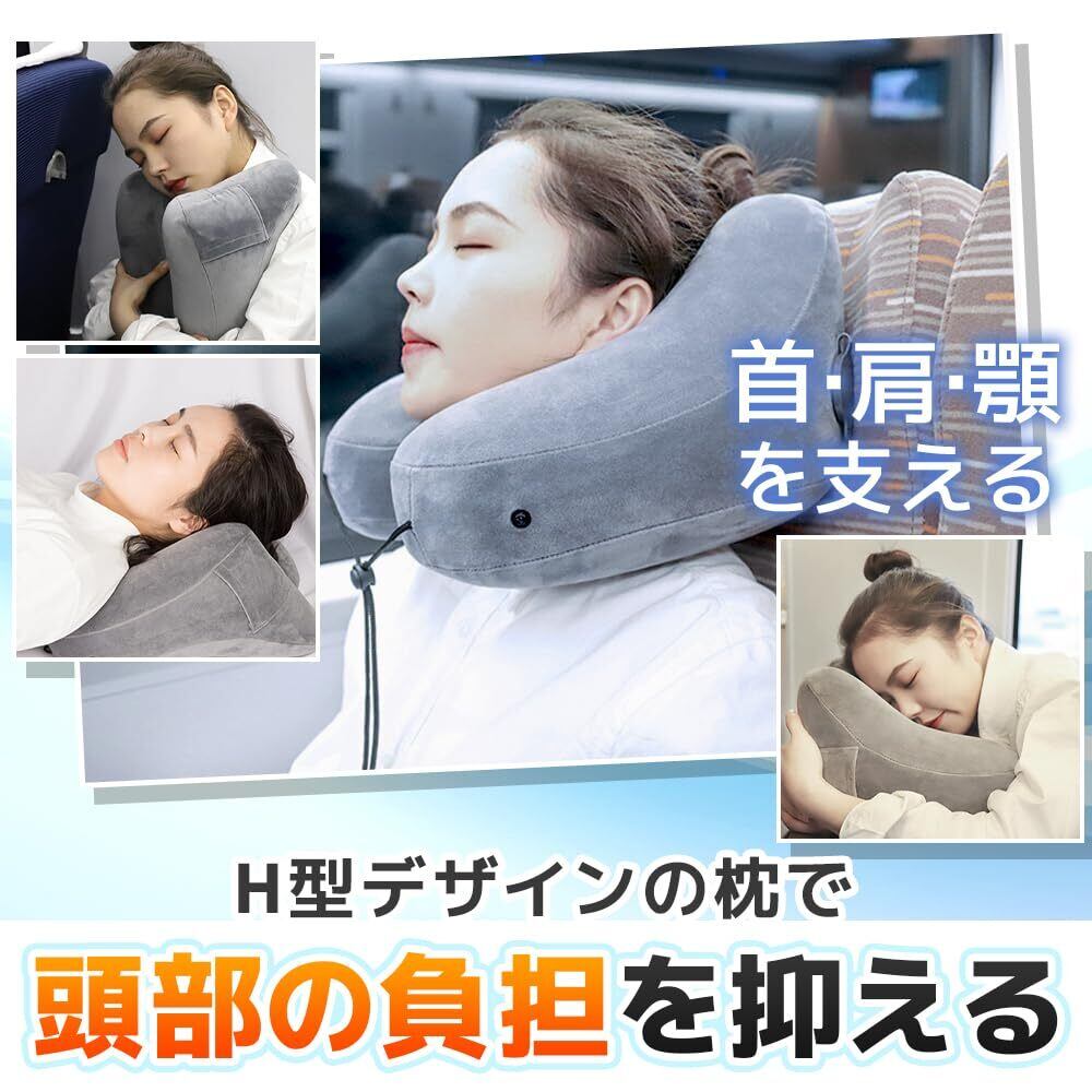 【新着商品】ネックピロー フード付き エアー 枕 旅行 飛行機 車 コンパクト デスク 昼寝 便利(パールグレー)