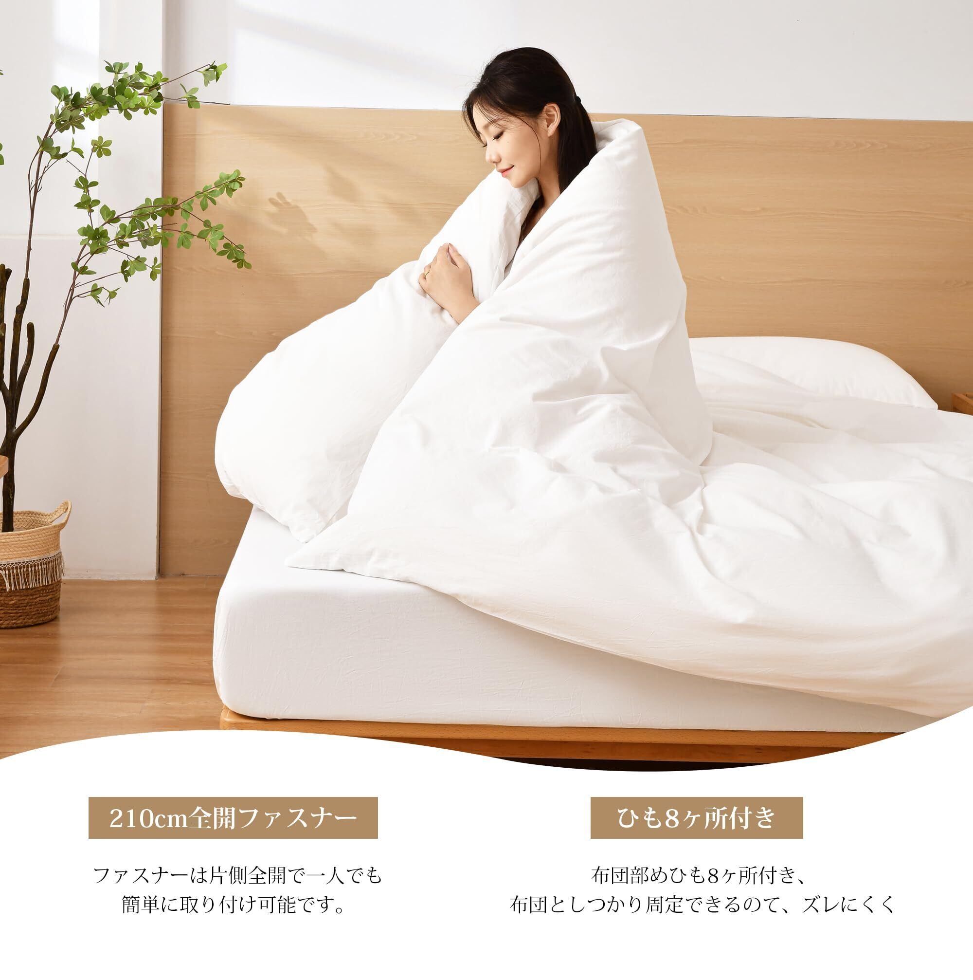 AYO 寝具カバーセット 布団カバーセット 洗いざらし シワ加工 水洗い やわらか (掛け布団カバー ボックスシーツ 枕カバー)吸水速乾 丸洗いOK 肌に優しい 無地 シンプル オールシーズン(セミダブル・4点セット ホワイト)