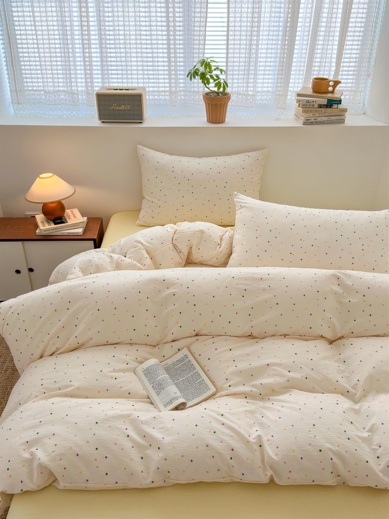 YYHNOOOOK 布団カバー 4点セット セミダブル 寝具カバーセット 掛け布団カバー 肌触りが良い ボックスシーツ 枕カバー ベッド用 布団用 丸洗いOK ズレ防止 ヒモ付き (水玉柄, セミダブル・4点セット)