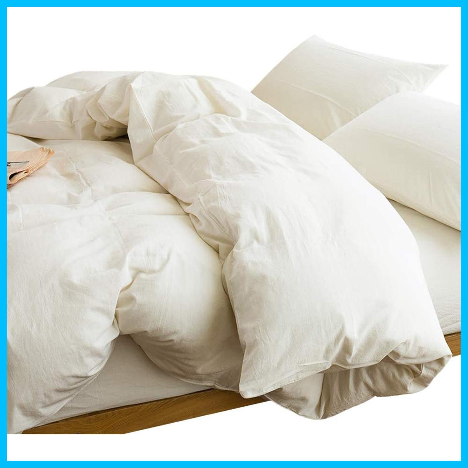【数量限定】布団カバー シングル 3点セット 寝具カバーセット 洋式ベッド・和式布団兼用 洗いざらし シワ加工 水洗い やわらか (掛け布団カバー ボックスシーツ 枕カバー)吸水速乾 丸洗いOK 肌に優しい 洗える 無地 シンプル オールシーズン (通年タイプ・アイボリー, シングル・3点セット)
