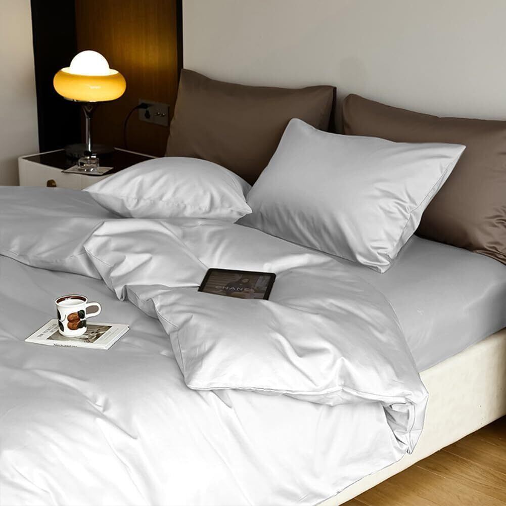 布団カバー 4点セット セミダブル サテン 光沢 艶感 布団かばー ベットカバー セット 無地 8ヶ所ヒモ付き 洗い替え 美肌 美髪 ライトグレー