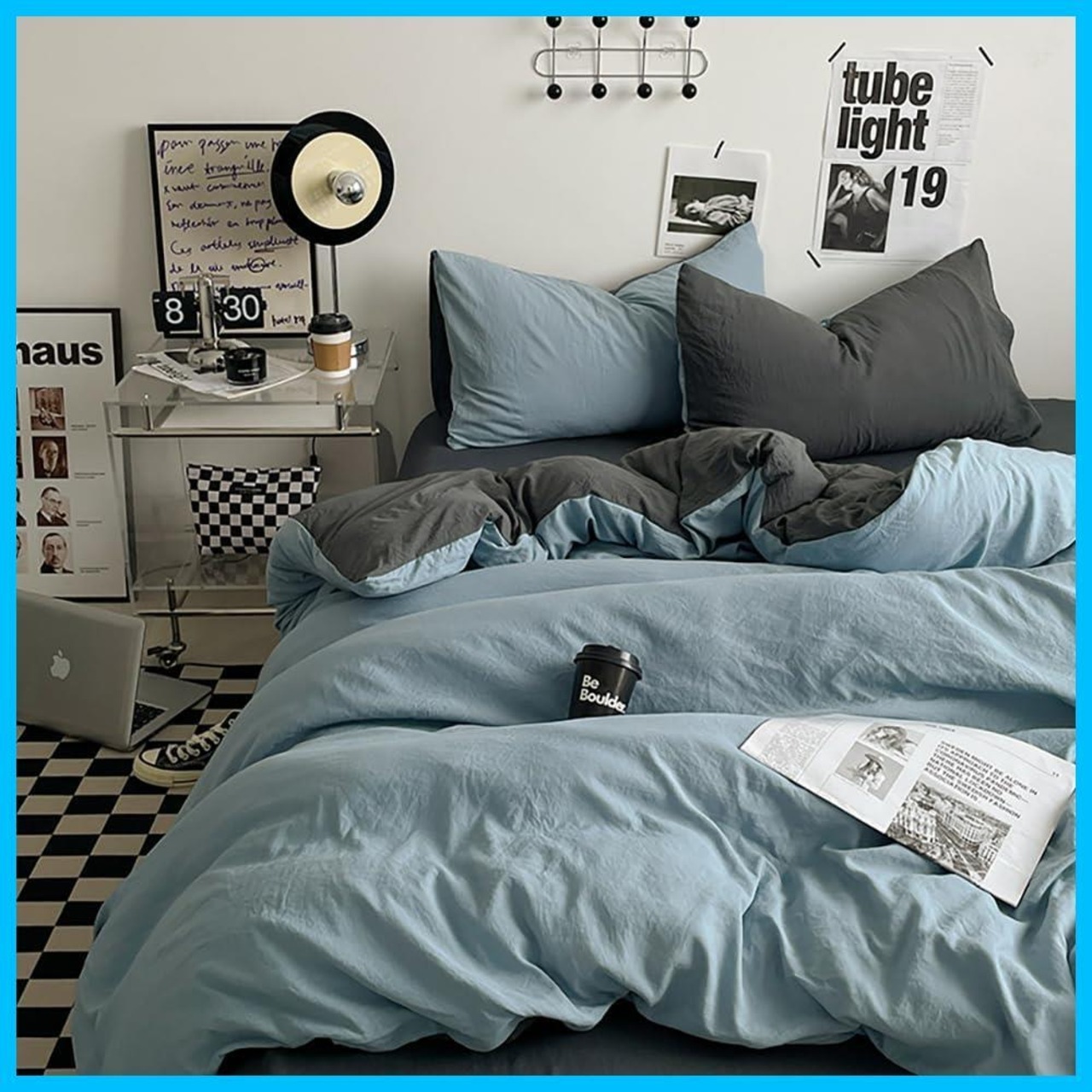 【特価商品】布団カバー 掛け布団カバー シングル 3点セットboxシーツ ふとんカバー 寝具カバーセットボックスシーツ ベッド用 敷き布団用 肌に優しい 丸洗い 引っ越し新居 (ライトブルーグレー, シングル3点セット)