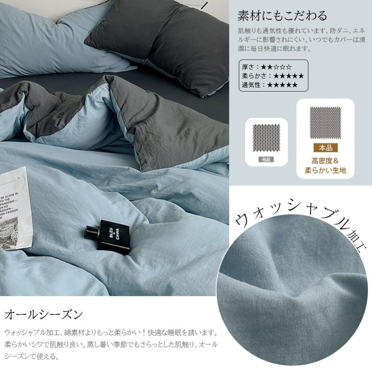 布団カバー 掛け布団カバー シングル 3点セットboxシーツ ふとんカバー 寝具カバーセットボックスシーツ ベッド用 敷き布団用 肌に優しい 丸洗い 引っ越し新居 (ライトブルーグレー, シングル3点セット)