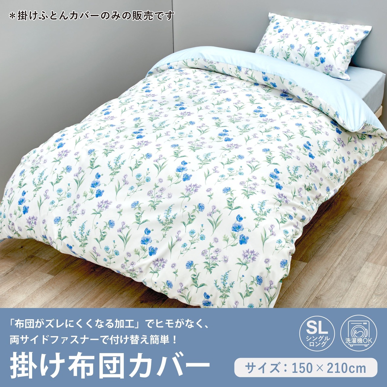 【数量限定】nishikawa【西川】 掛け布団カバー シングル 洗える 布団がズレにくくなる加⼯ ヒモ無し 両サイドファスナーでふとんの出し⼊れ 簡単 時短 花柄 カバーリングスタジオ CT4005MU ブルー PI04300060