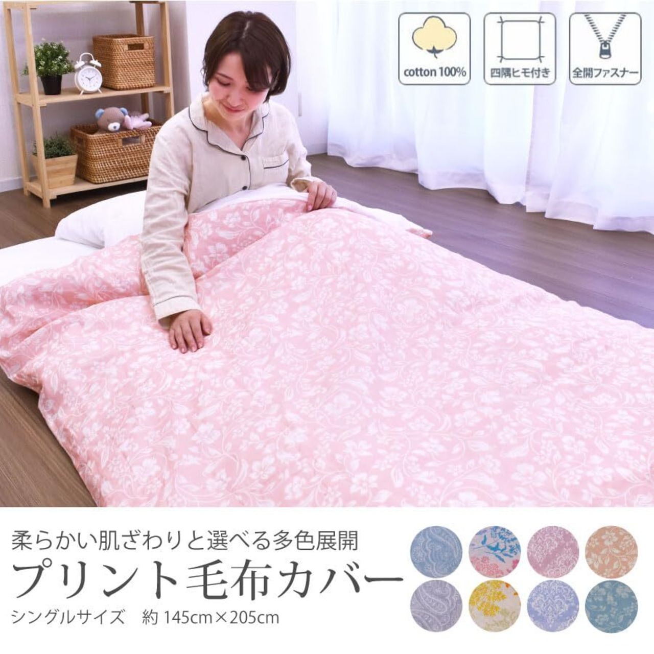 全開ファスナー仕様により、簡単に取り外しができ、洗濯も楽々。4ヶ所にひもが付いているため、毛布や掛け布団をしっかり固定できます。