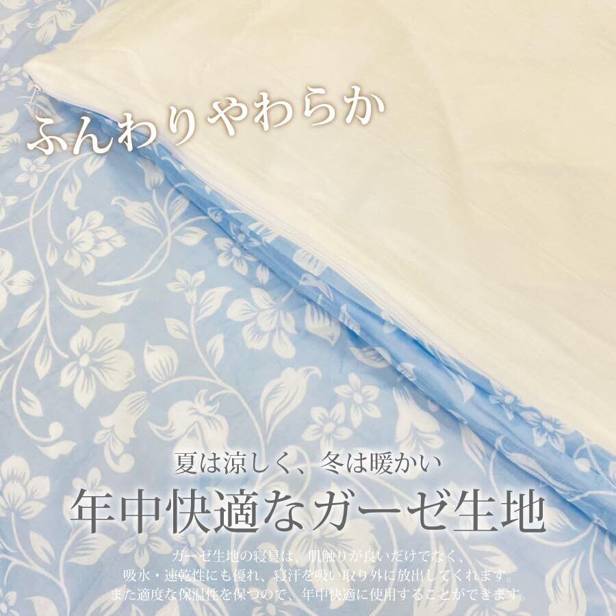 ガーゼ 毛布カバー ファスナー付き 4ヶ所ヒモ付き 寝具カバー 布団カバー 模様 ペイズリー ハーブフラワー ダマスク (679・ブルー)