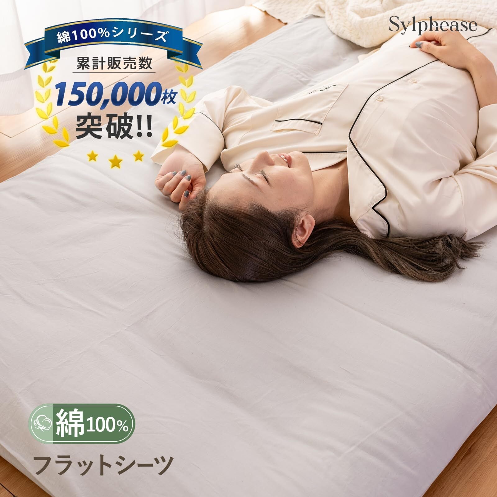 【肌に優しい綿100%】コットン100%のやわらかいコットン生地を使ったシルフィーズおすすめのお手軽なフラットシーツです。薄手のため速乾性が高く、通気性も良いです。