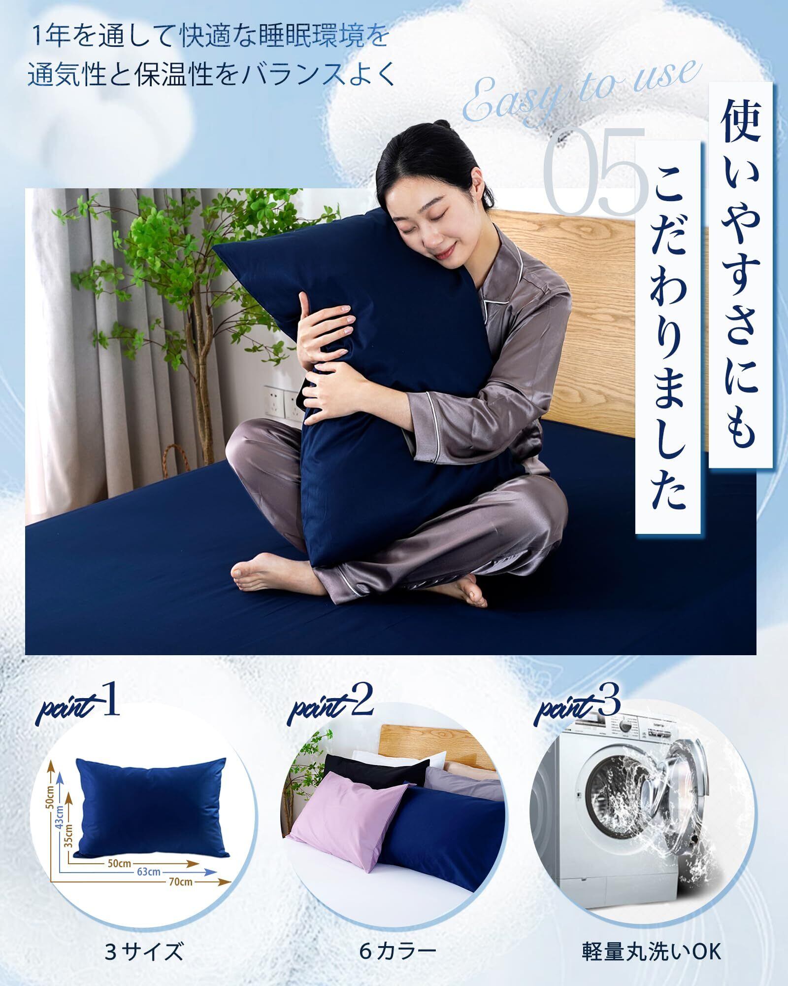 【新着商品】Maru Living【日本ナノ白金×高級綿100%】枕カバー 43 63 綿100 まくらカバー 【高密度ツイル織り W抗菌防臭防ダニ】 ピローケース 綿100 ホテル仕様 毛玉防止 光沢感 封筒式 枕カバー 40 60 マクラカバー ピローカバー コートン めん100 オールシーズン 洗える 通気性 ネイビー (43x63cm・ネイビー)