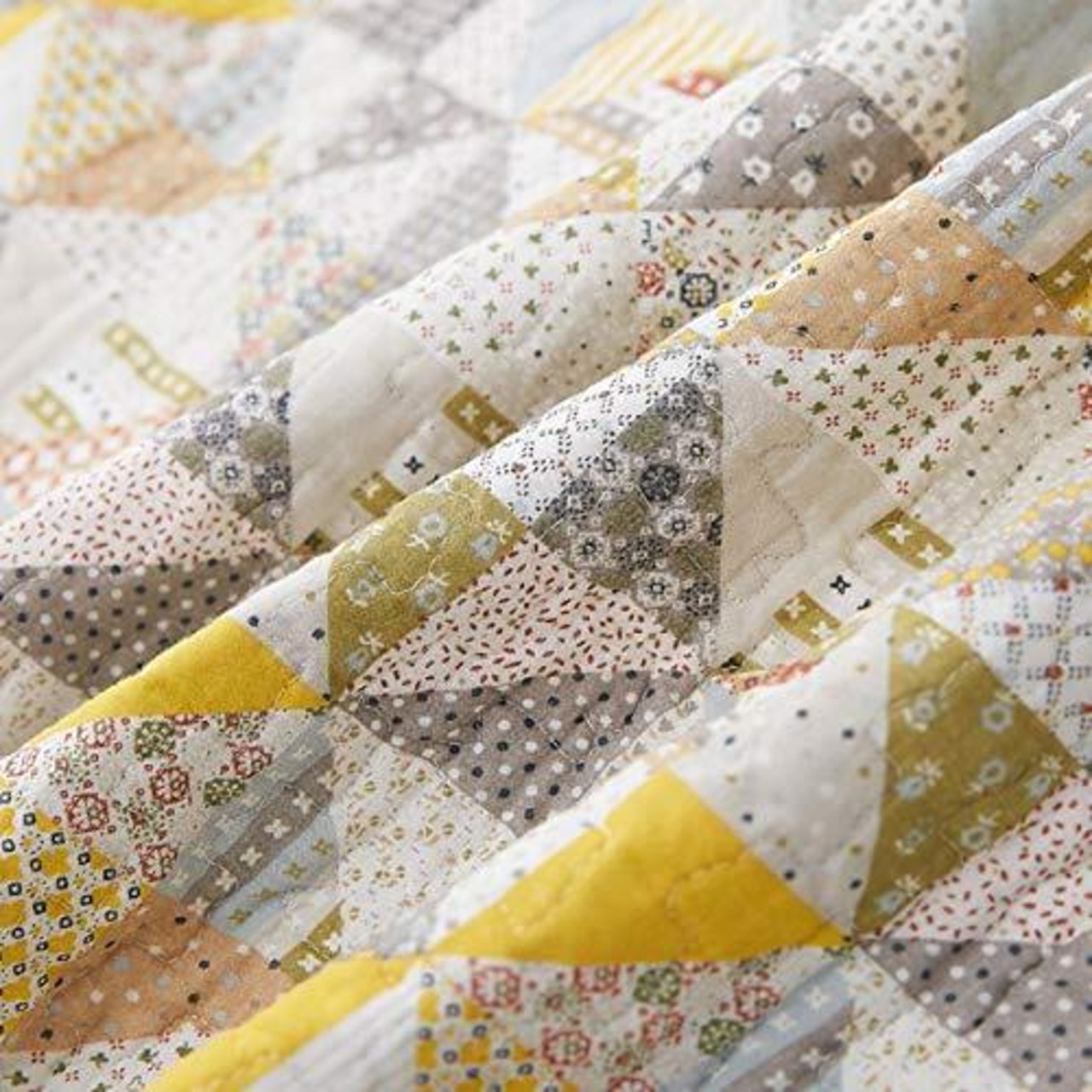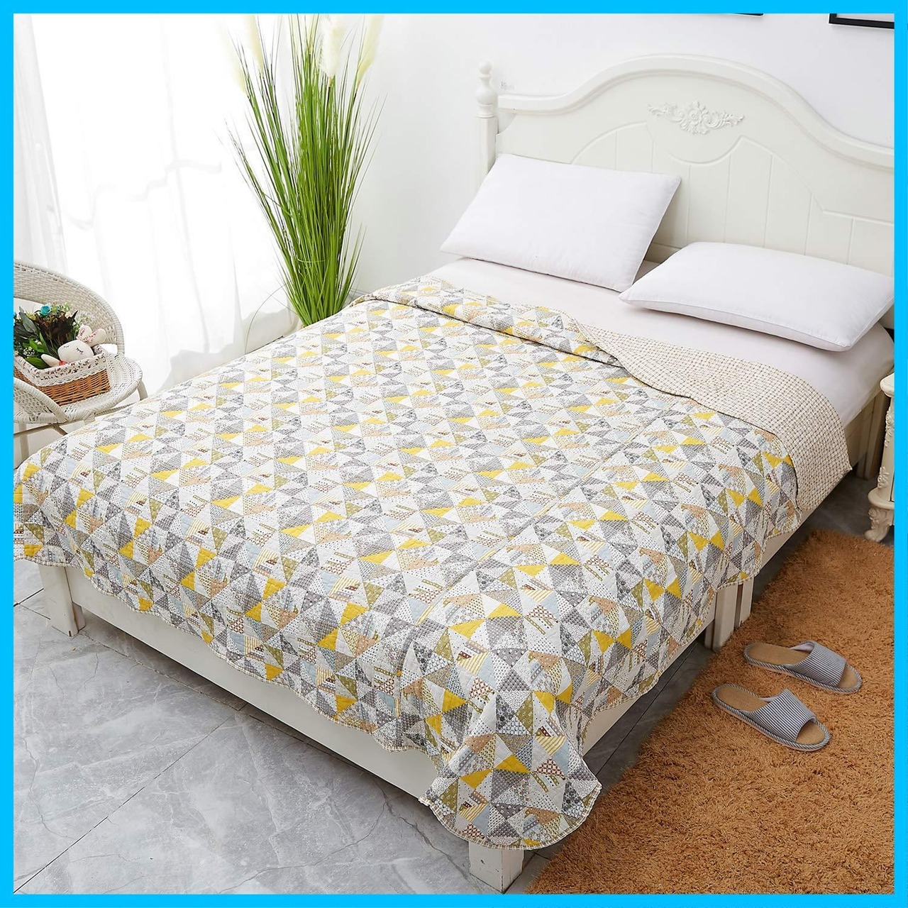 JEMA ジェマ キルトケット マルチカバー ベッドカバー ソファカバー こたつ中掛け 水洗いキルト リバーシブル 四季通用 約190X240cm チエック イェロー