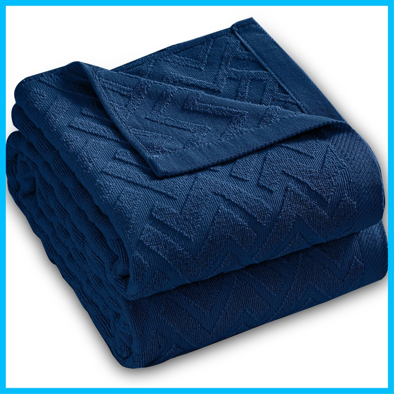 AYO タオルケット シングル ブランケット 綿100% コットン おしゃれ エアーケット キルトケット 抗菌 肌掛け 軽量 柔らかく肌触り 毛玉が出ない 毛布 オールシーズン/夏用 ソファー用 丸洗いOK 吸湿速乾 汗やムレによる不快感を抑えて 母の日/父の日/誕生日のプレゼント(ネイビー 140×190cm)