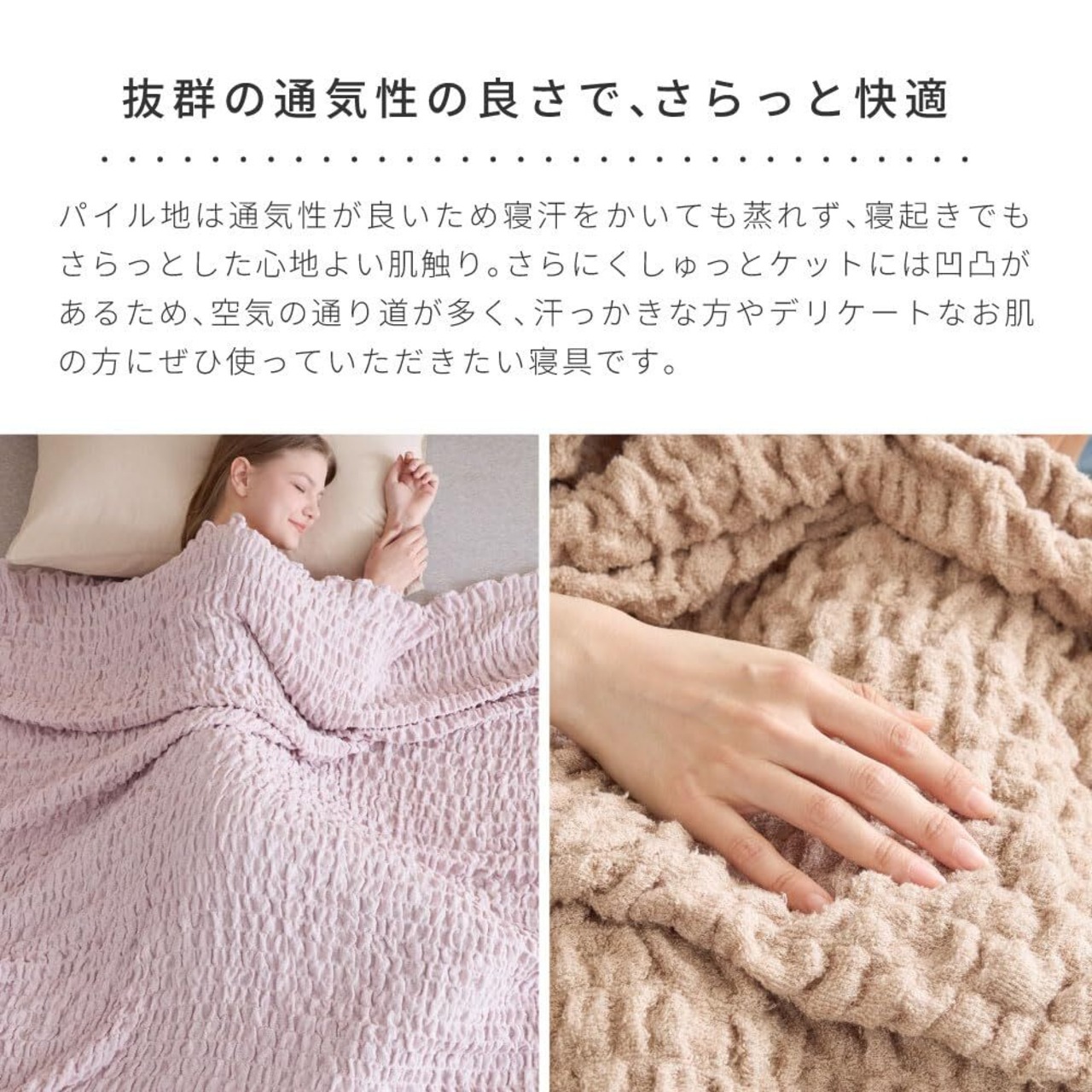 抜群の通気性の良さで、サラッと快適。パイル地は通気性が良いため寝汗をかいても蒸れにくく、寝起きでもサラッとした心地よい肌触り。空気の通り道が多く、汗っかきな方やデリケートな肌の方にぜひ使っていただきたい寝具です。