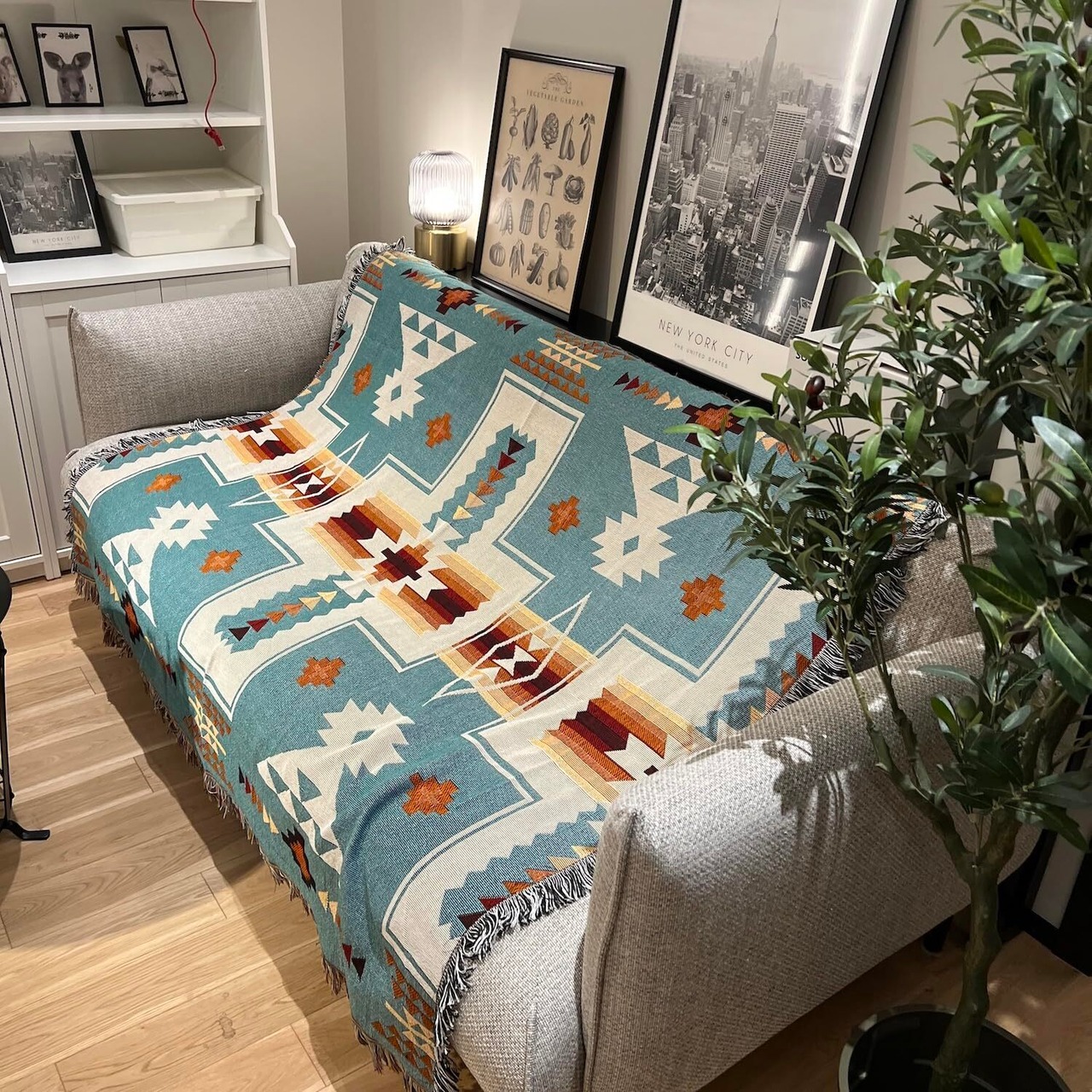 【新着商品】果皮森林 ラグマット ネイティブ柄 キリム オルテガ柄 多機能 水洗い 四季通用 ソファーカバー ラグ おしゃれ 幾何学模様 マルチカバー ブランケット 130X160cm…