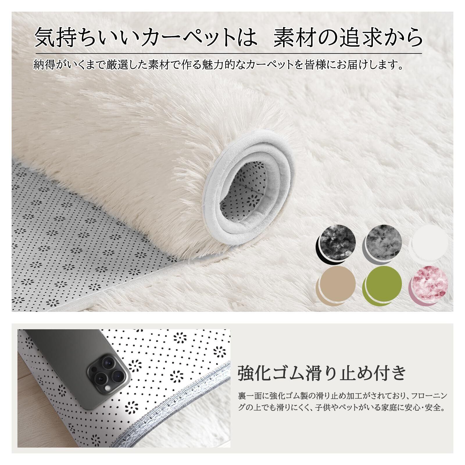 Beddiny カーペット ラグ ラグマット 洗えるラグ【中層:極厚30D高密度ウレタン 独自技術の抗菌防臭加工】絨毯 オールシーズン快適に使用 滑り止め付き 高密度シャギーラグ アイボリー 120×160cm