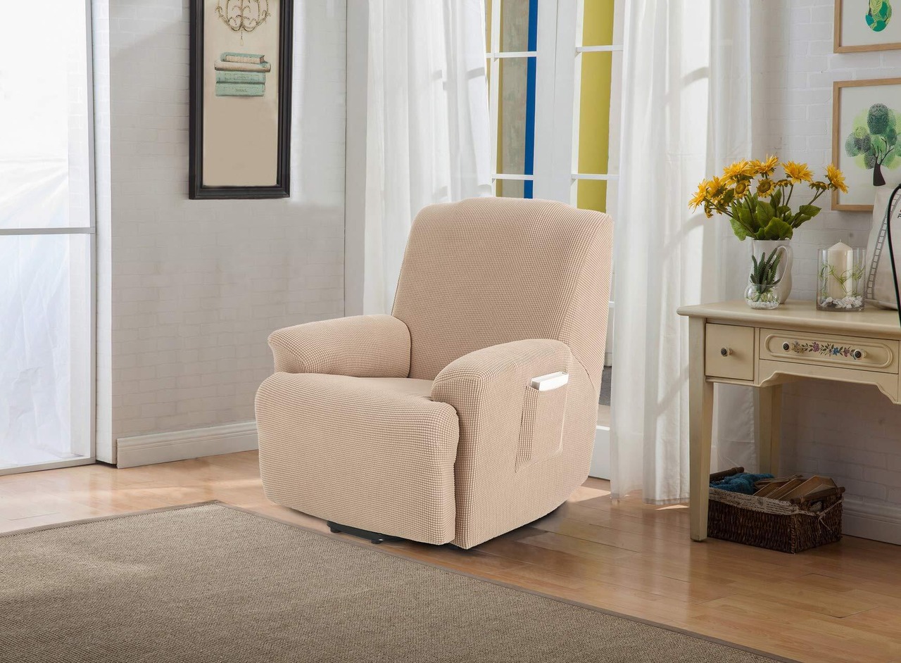 TIANSHU リクライニングチェアカバー, 無地 縦横弾力 ストレッチ フィットタイプ 肘付き 滑り止め 柔らかい 伸縮素材伸び良く 四季適用 超便利, リクライニングソファカバー(リクライニングチェアカバー,ライトブラウン)
