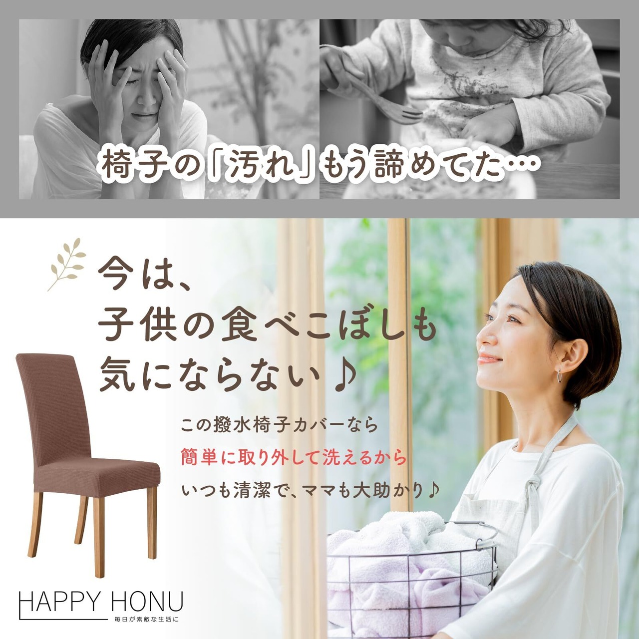 [ハッピー ホヌ] 椅子カバー 背もたれ フルカバー 伸びる ダイニングチェアカバー 撥水 汚れ防止 ストレッチ 洗濯可能 ホワイト 4枚