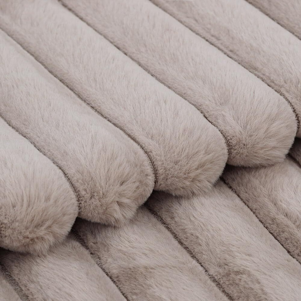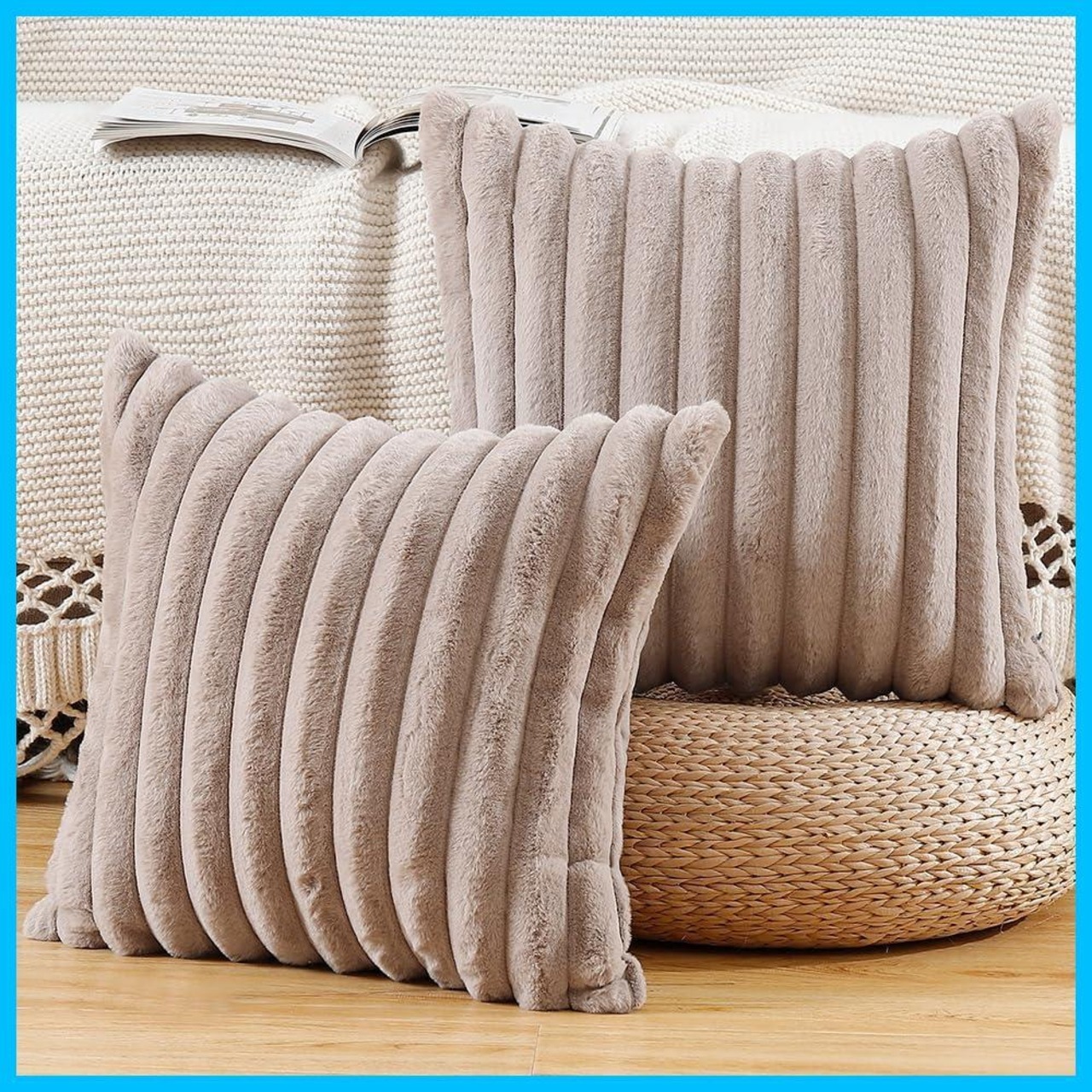 MADIZZ 2枚セット フェイクファー プラッシュ スローピローカバー ふわふわストライプ ソフト装飾クッションカバー ソファ ベッドルーム ピローシェル用 50 x 50 cm ライトトープ