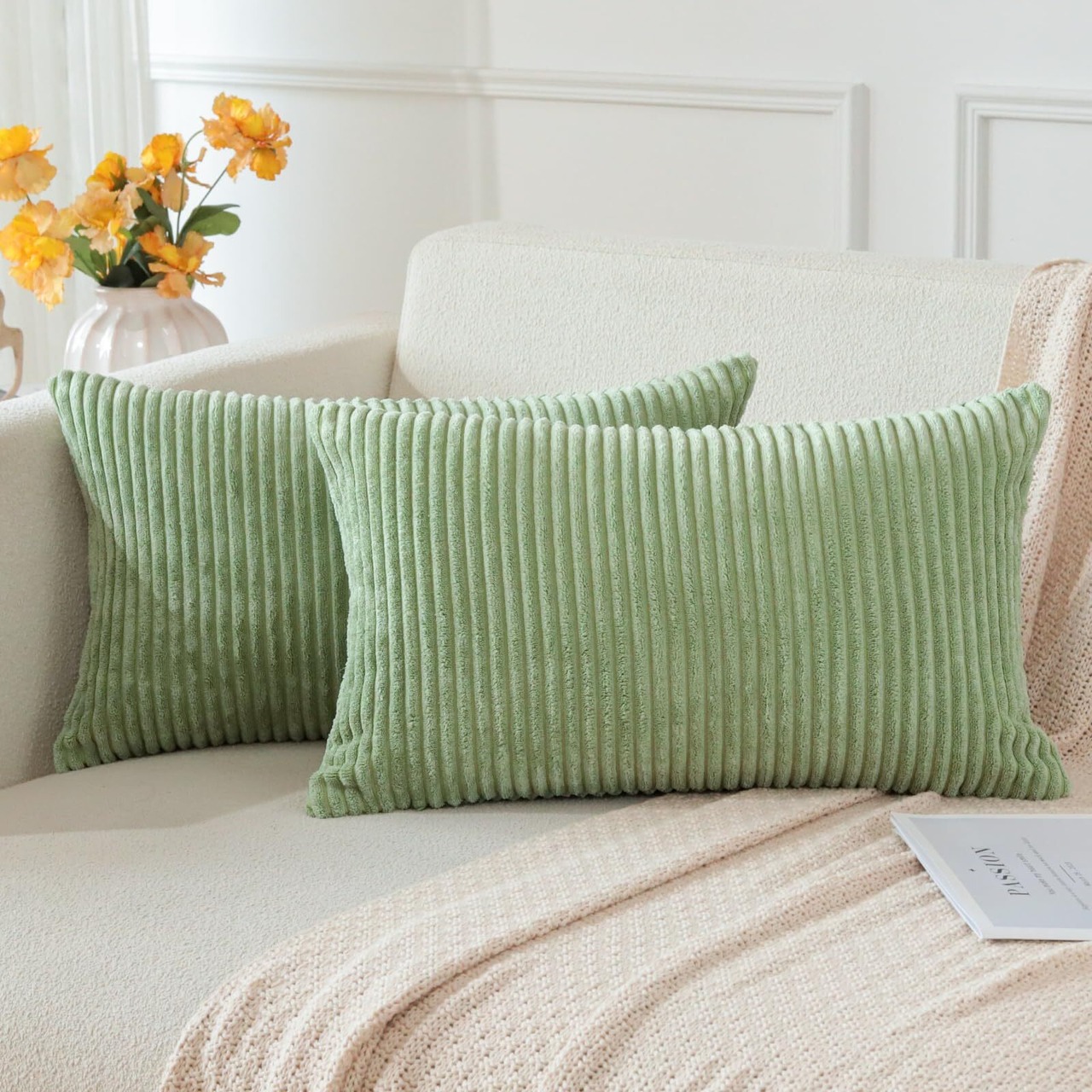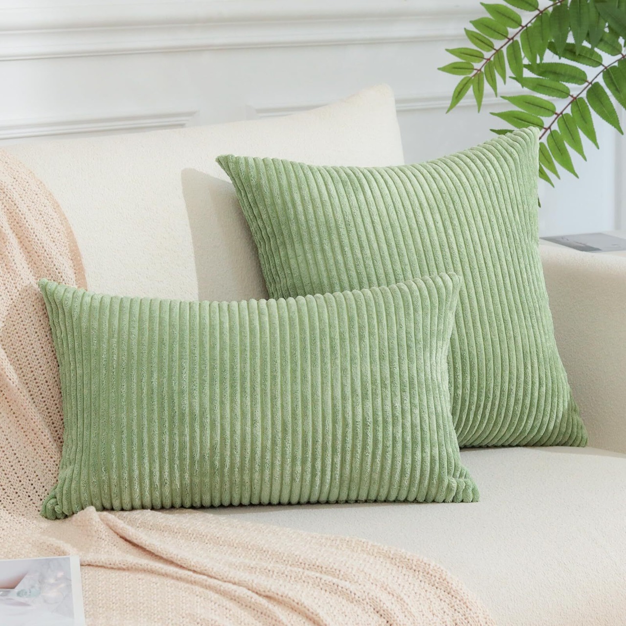 Otostar クッションカバー 30x50cm 北欧 2枚セット コールテン ストライプ おしゃれ 可愛い モダン ファスナー インテリア ソファー用クッションカバー (グリーン, 30x50)
