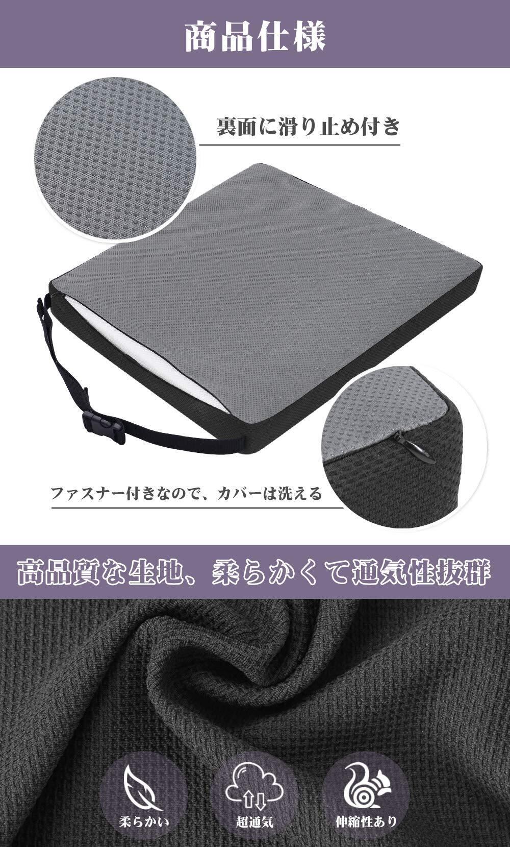 Shinnwa ゲーミング座布団 低反発2cm・高反発3cmの2層構造 厚み5cmで快適サポート 洗えるカバー・滑り止め付き ゲーミングチェア・椅子用クッション ブラック