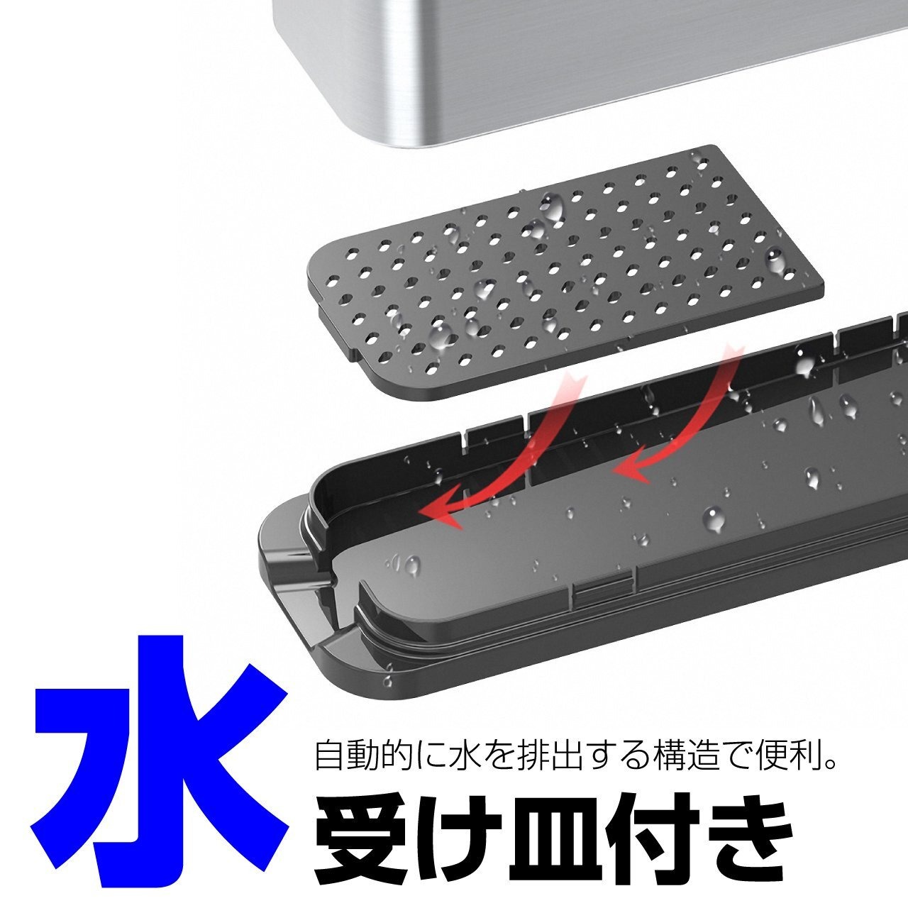 つるんとしたステンレス特有のシンプルデザインで、様々なキッチンインテリアに合わせやすい。底は自動的に水が排出される構造な上に、着脱可能でお掃除もしやすい。いつでも清潔に使いたい台所周りで重宝します。