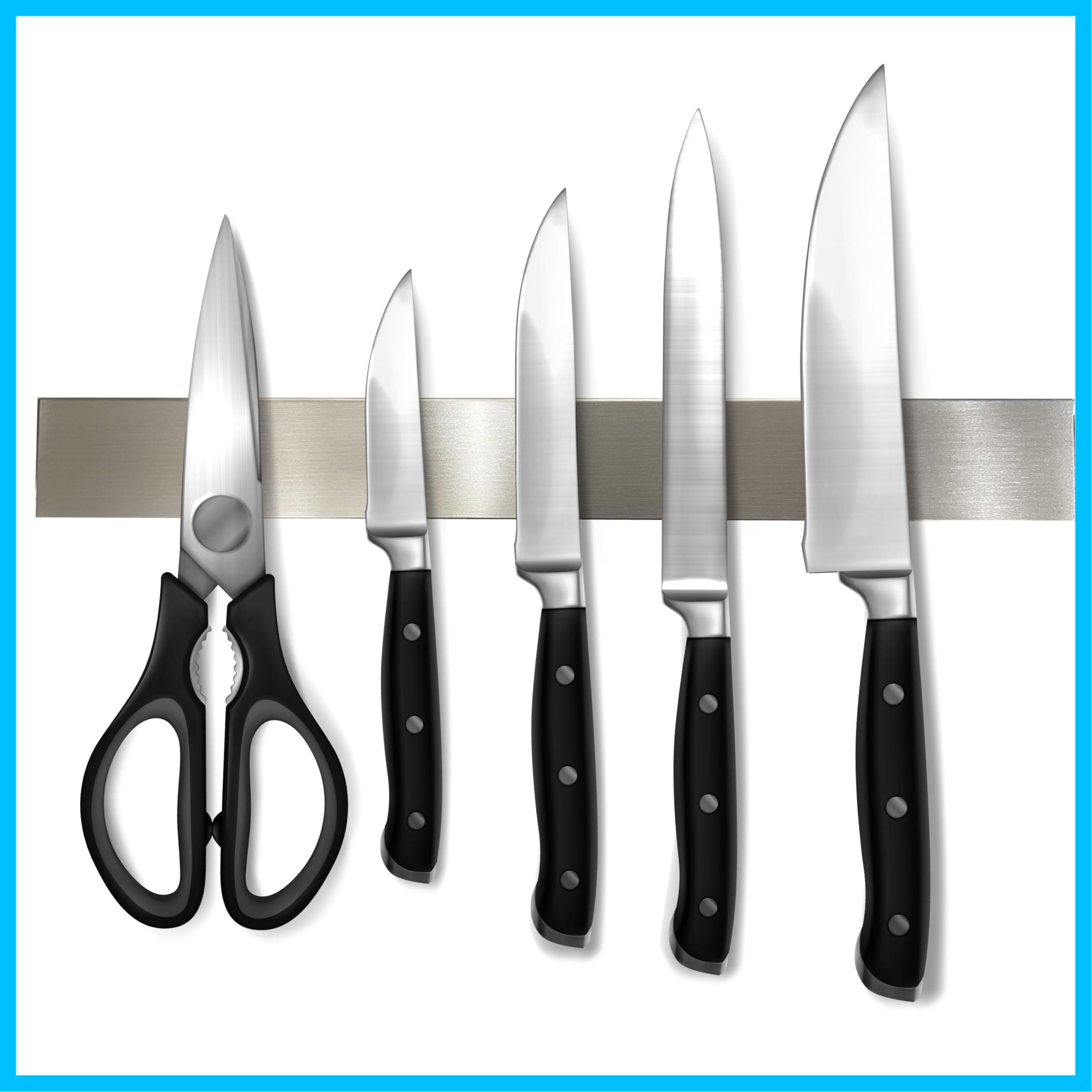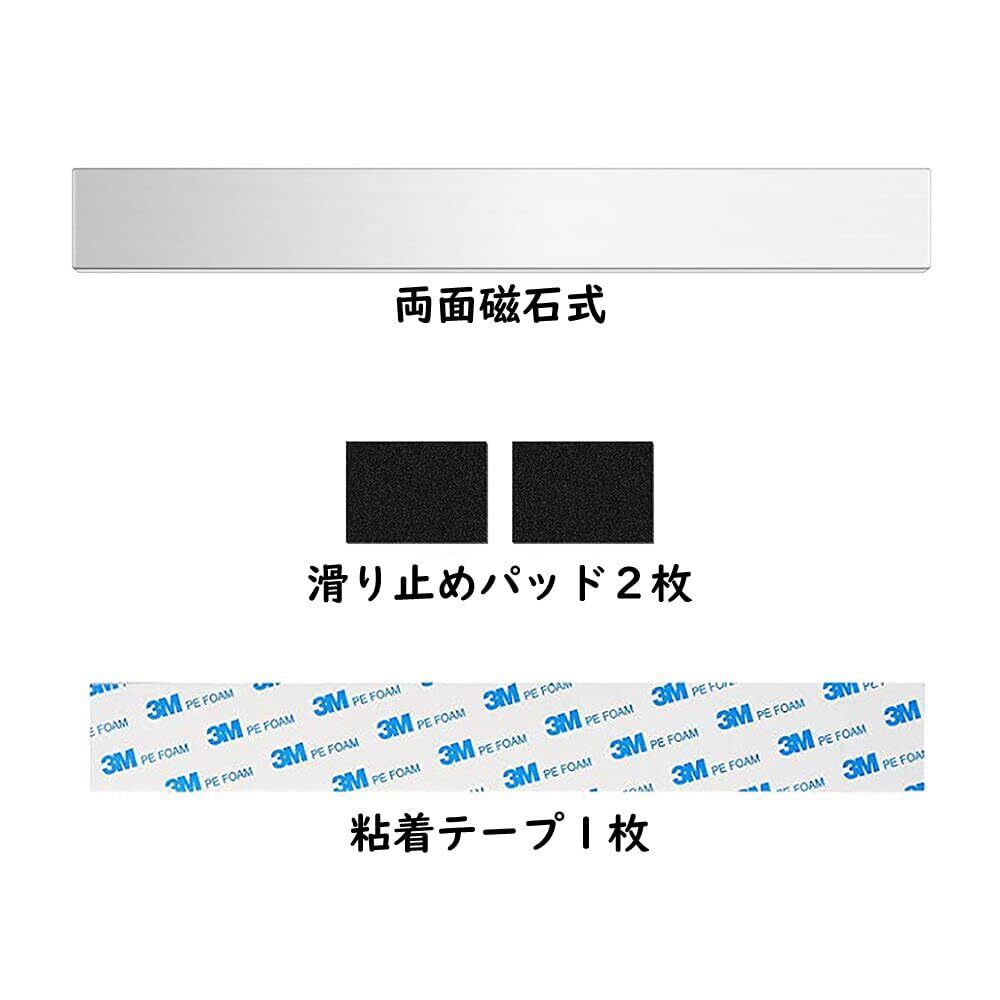 ARAK マグネット包丁 磁石 包丁スタンド 包丁立て ナイフスタンド マグネット ナイフラック 強粘着テープ 壁掛け式 キッチンツール (30cm, シルバー[両面磁石])