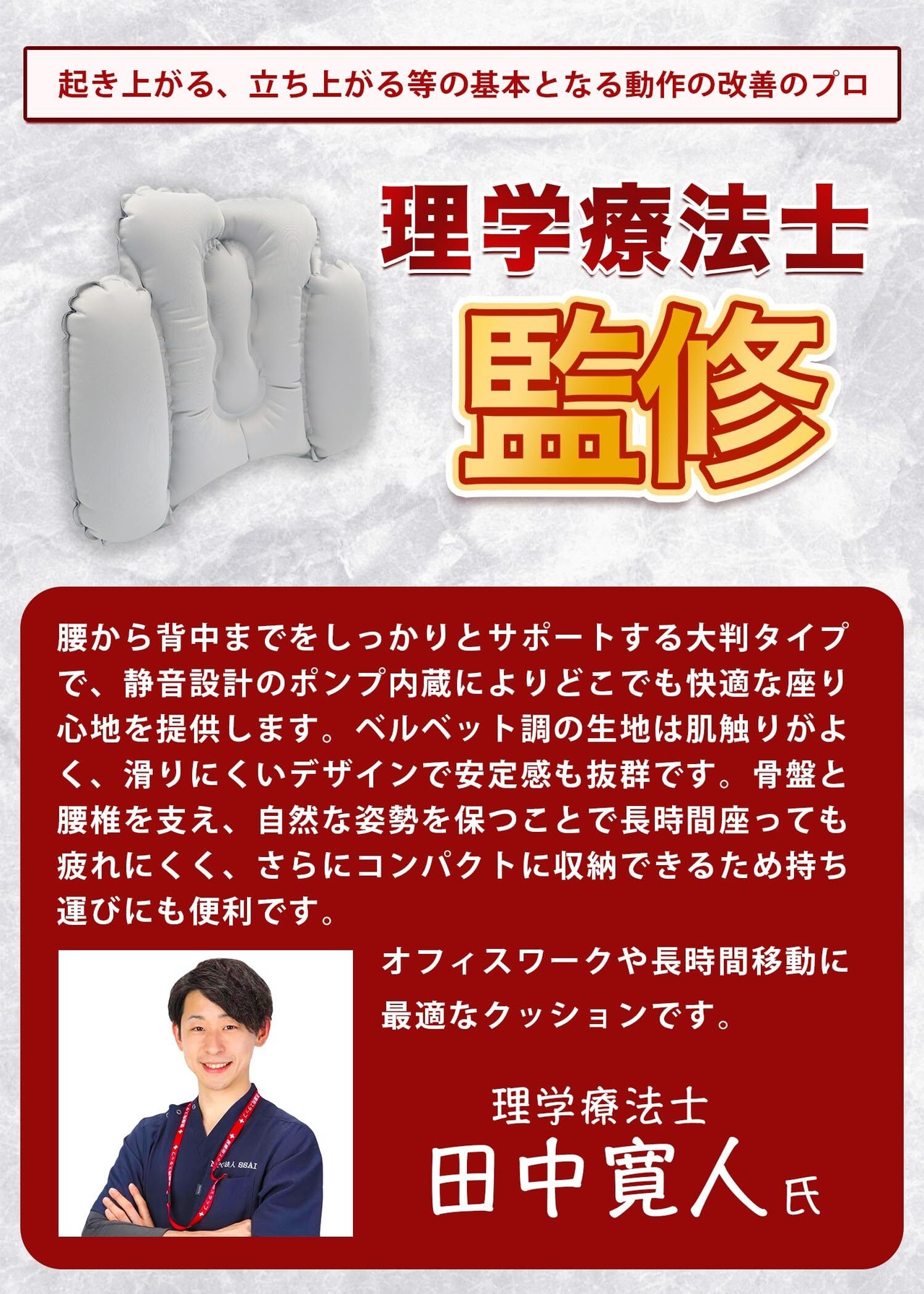【背中まで支えられる大判タイプ】 腰枕 腰 クッション 【理学療法士監修】 新幹線 飛行機 オフィス エアー 背もたれ 持ち運び