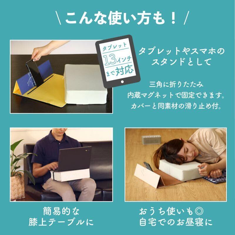 カバーを内側に三角に折畳んで固定すれば、モバイルスタンドにも。閉じた状態で膝上簡易テーブルとしても使えます。