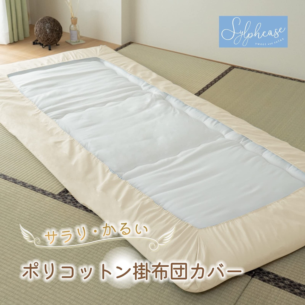 シルフィーズ ワンタッチシーツ シングル 綿混 ポリエステル 綿 シーツ カバー フィットシーツ 布団カバー 和式 ゴム ベージュ 100×210cm