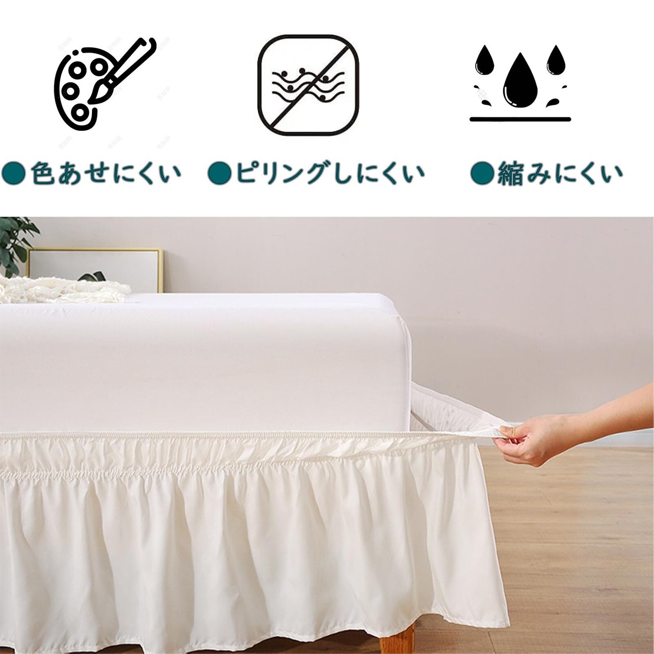 ベッドスカート セミダブル フリル 簡単フィット アンティーク風 ラップアラウンドスタイル シンプル 無地 洗える 伸縮ベッドラッフル 四季適用 ホワイト 120×200+38cm