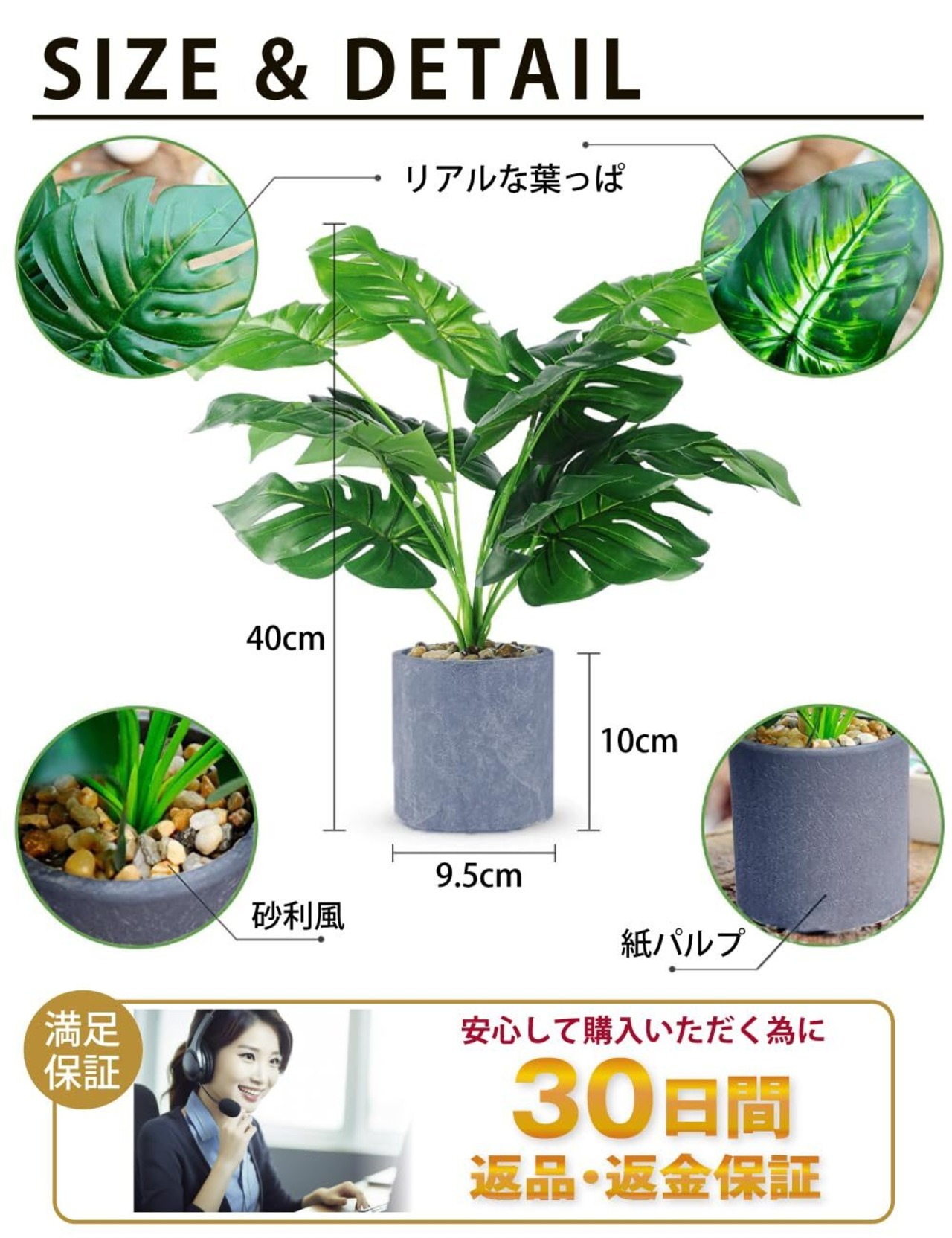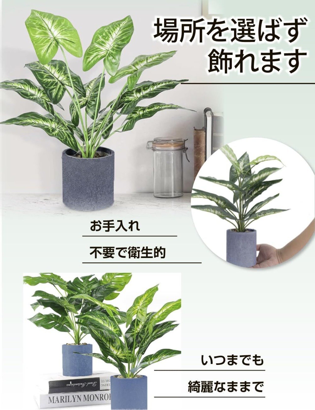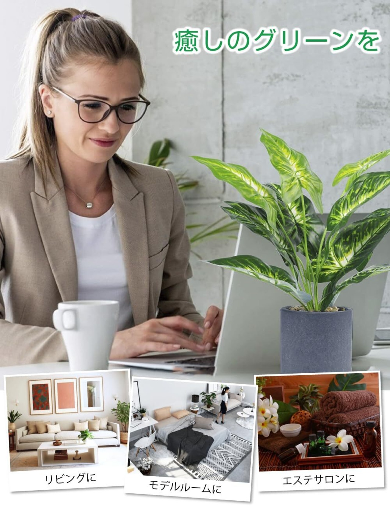 【癒しの空間】本物の植物では苦手な場所でも、枯れる心配がないので、玄関や寝室などの明るさが足りないところや、風通しが悪い場所でも気にせず飾れます。お部屋にグリーンがあると、安らぎや癒し効果でストレス軽減にも繋がります。