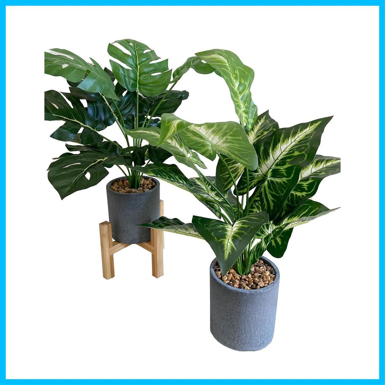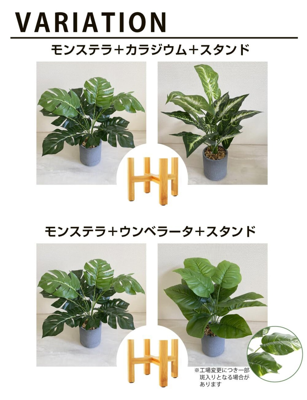 Kugusa 【生花店監修】 フェイクグリーン 人工観葉植物 モンステラ 鉢植え 造花 インテリア 枯れない 2点セット 花台付き (モンステラとカラジウム)