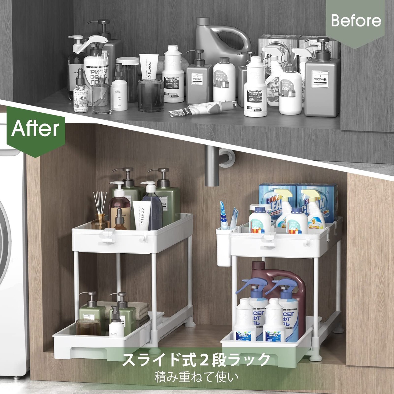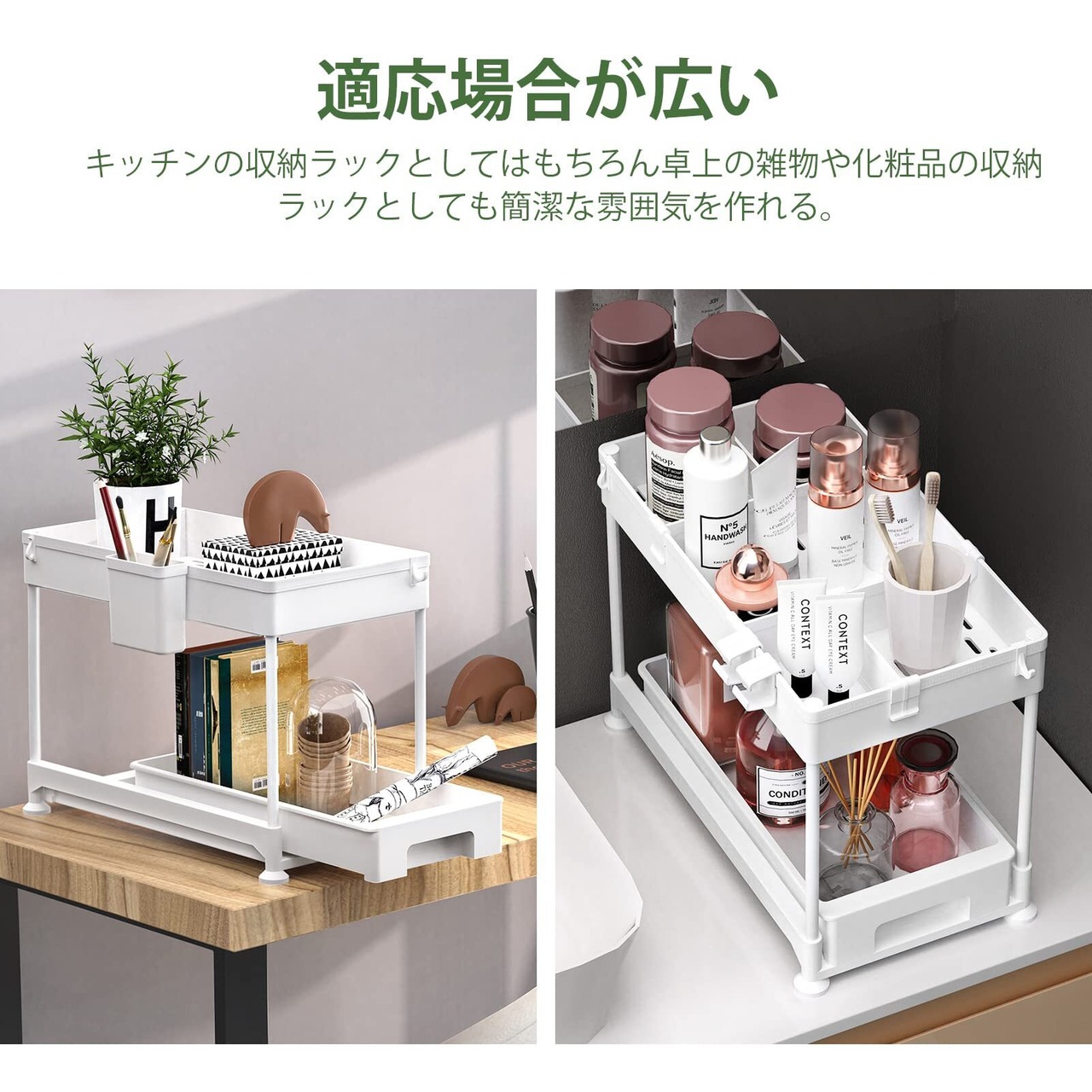 SPACEKEEPER シンク下 スライド式収納ラック 2段 [2個セット] 引き出し式 幅22cm キッチン収納 洗面台下 小物整理 調味料 隙間収納 組立簡単 省スペース ホワイト