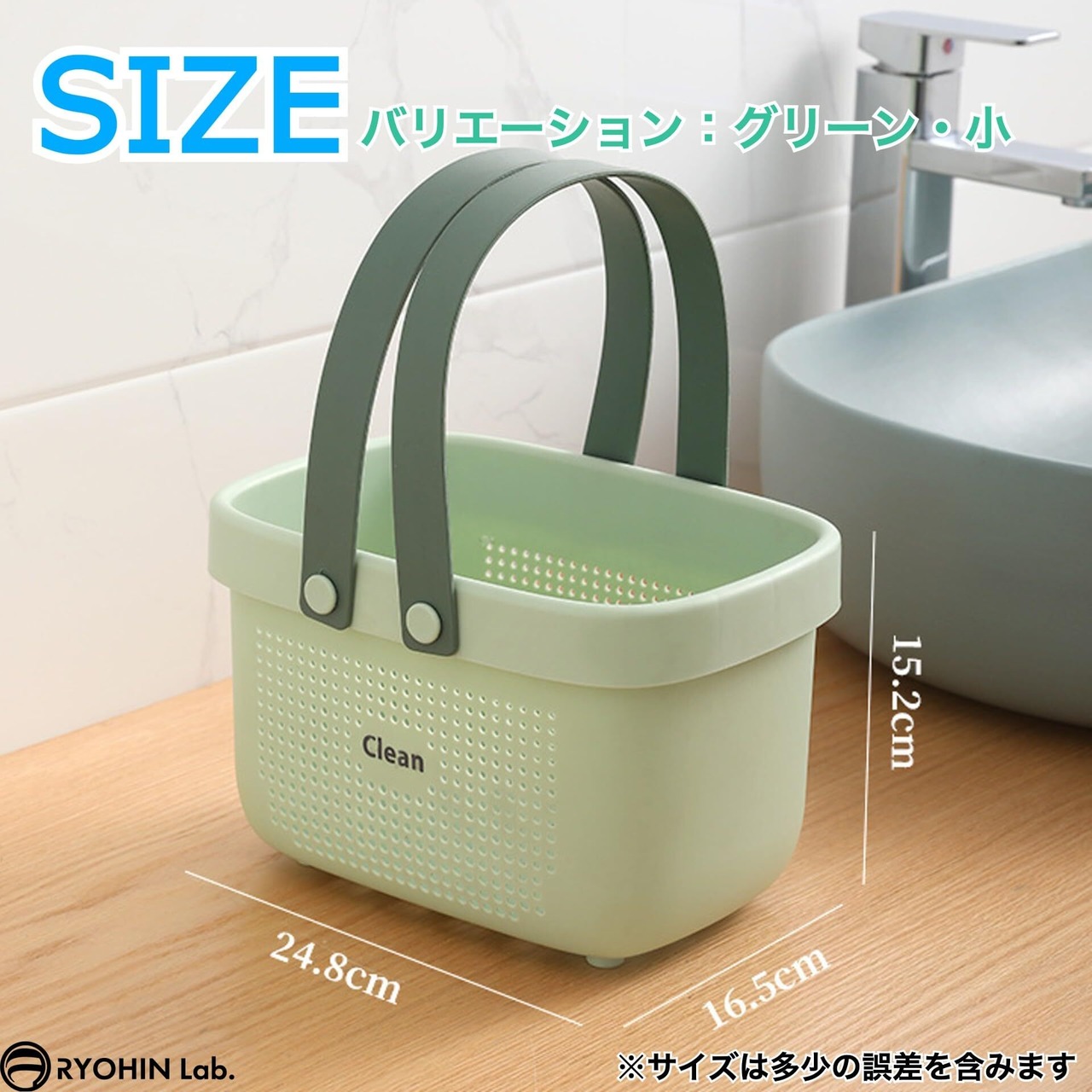 【人気商品】RYOHIN Lab.(良品ラボ) バスケット 洗面用具 風呂 手提げ かご ランドリー シャワー 水切り 洗面所 温泉 銭湯 スパ バスルーム 1個 (グリーン, 小)