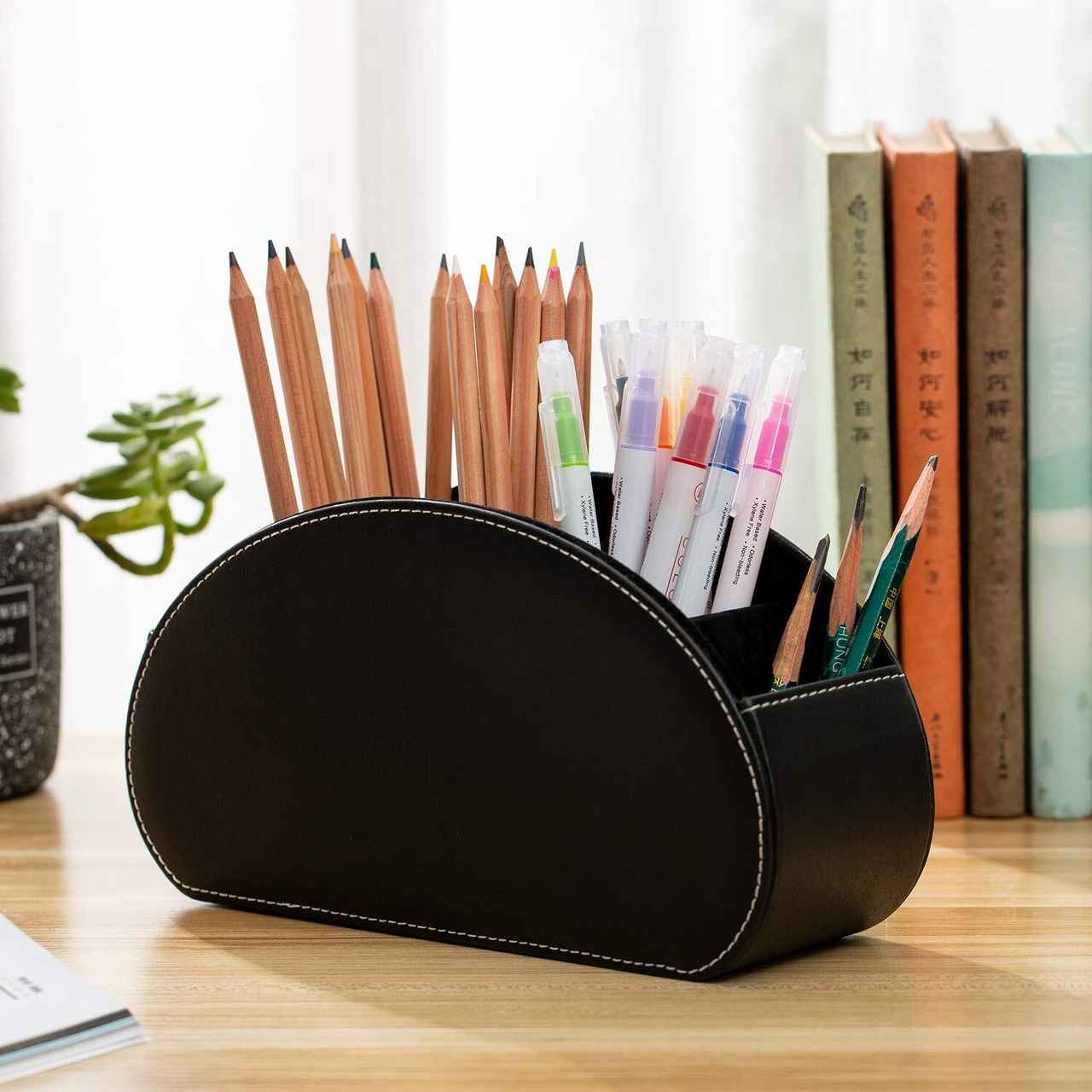 書斎:プロや学生に、収納ケースとしてペンホルダーとして画筆、鉛筆、定規、消しゴムなど様々な文房具を収納できます。