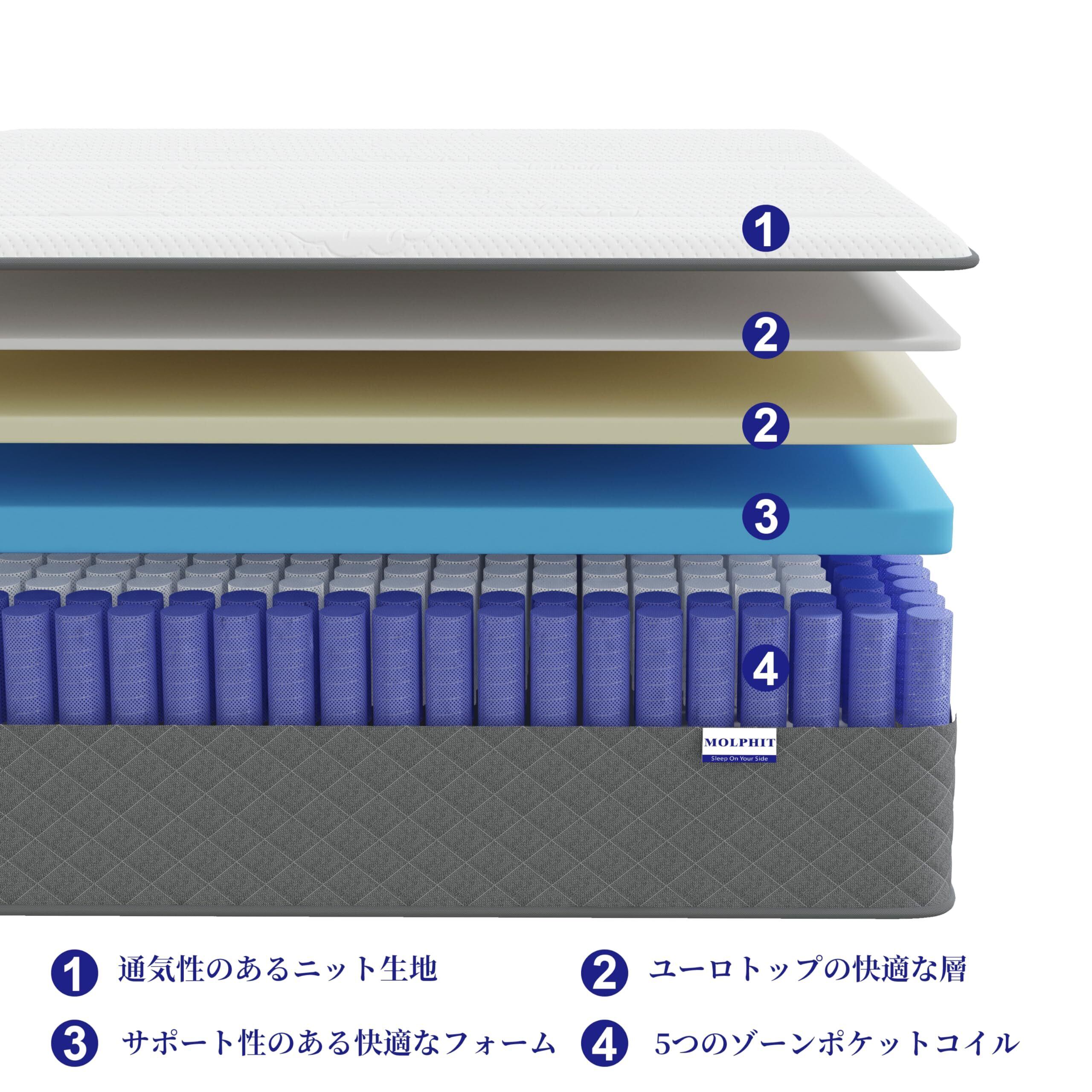 【特価商品】MOLPHIT マットレス セミダブル 厚さ23CM ポケットコイル 高反発 セミダブル ベッドマットレス 硬め 体圧分散 通気性 圧縮配送