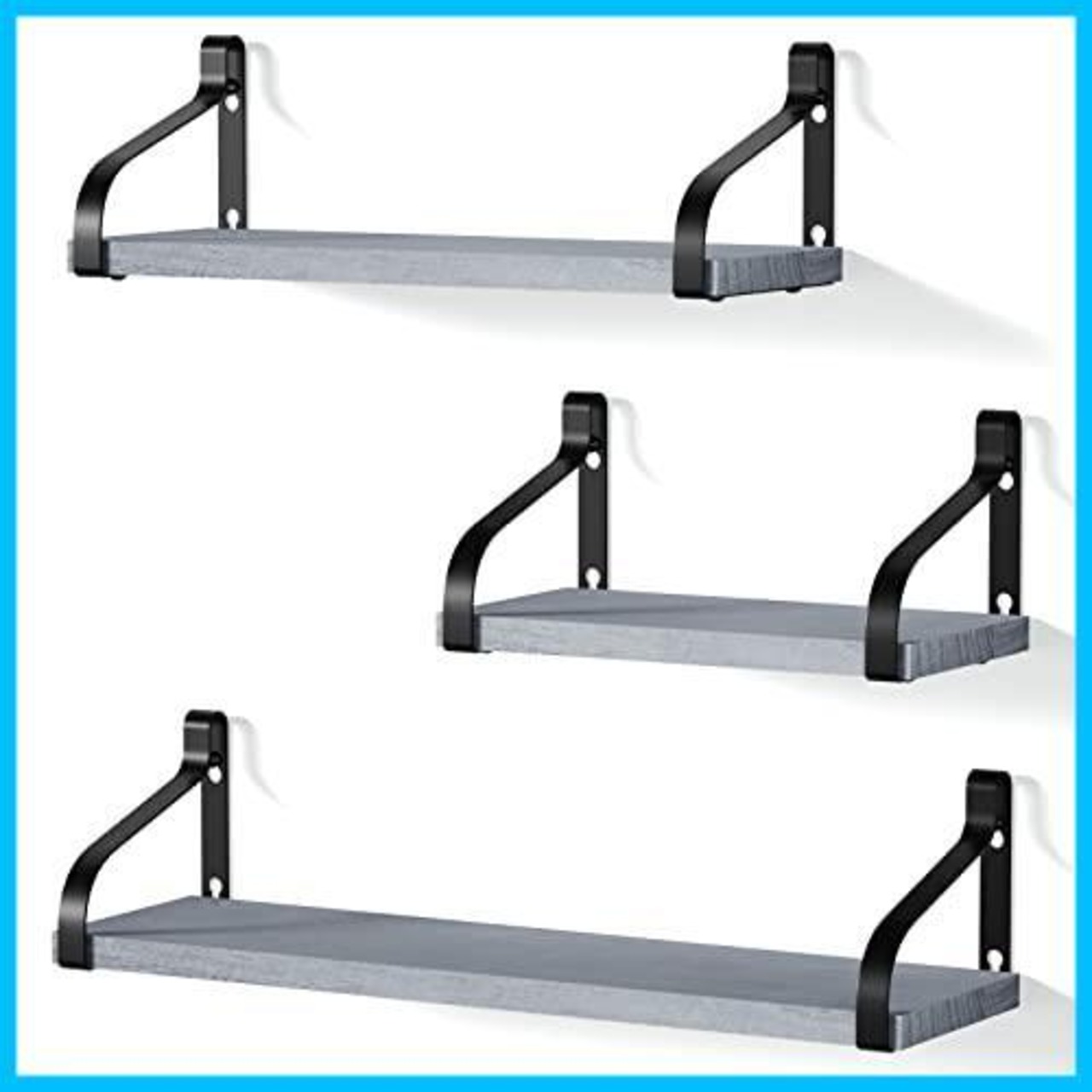 Love-KANKEI ウォールシェルフ ウォールラック 壁掛け棚 DIY飾り棚 収納棚 天然木製 ネジ付き 3個セット 調理器具 生活雑貨 整理整頓(23+33+43cm 3点セットグレー)