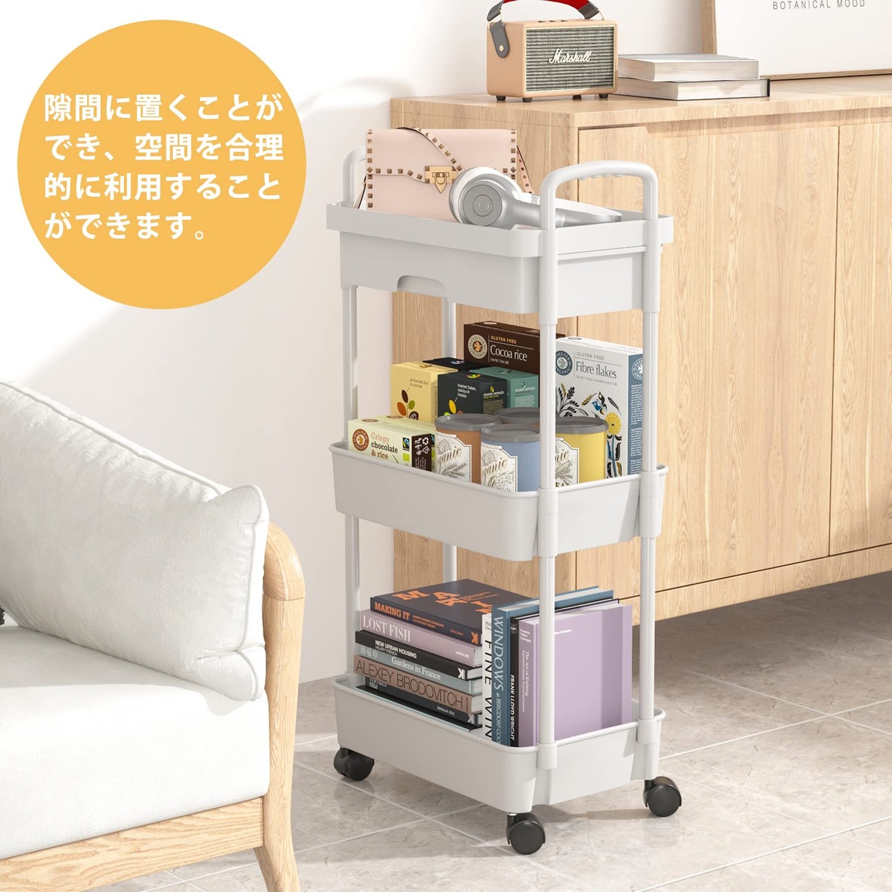 UDEAR 3層 プラスチック ローリング キッチンラック 引き出し付き モバイル ユーティリティ カート ハンドル付き 貯蔵 トロリー リビング ルーム バスルーム オフィス キッチン用 41*30*76 cm ホワイト-3