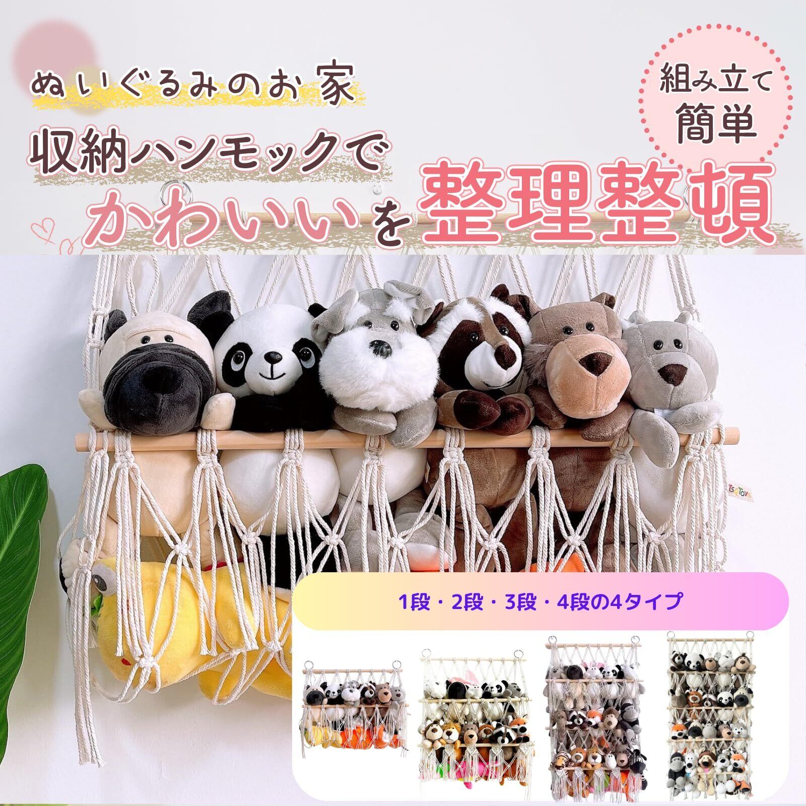 CocoroFactory ぬいぐるみ 収納 ネット ハンモック 吊り下げ 壁掛け 見せる収納 インテリア メッシュ (1段)